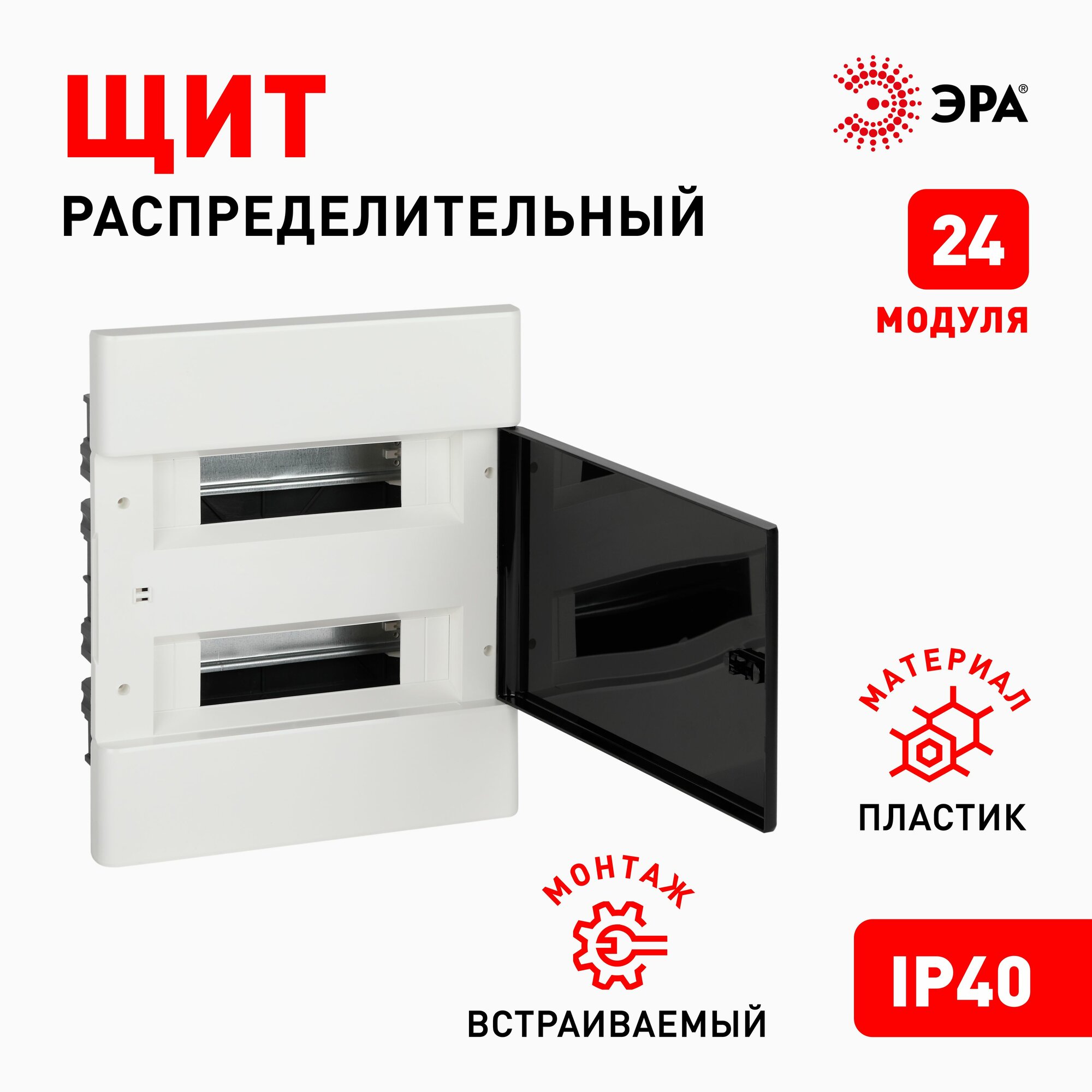 Щит распределительный встраиваемый ЭРА ЩРВ-П-24 Trend BOXF-24-p-f-t пластиковый на 24 модуля с дверцей IP40, 359х304х104 мм интересное: