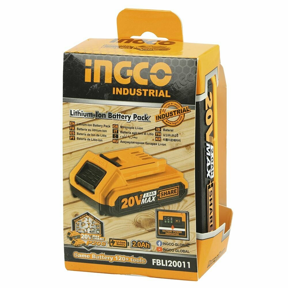 Аккумуляторная батарея Li-Ion INGCO FBLI20011 INDUSTRIAL 20 В 2 Ач интересное: