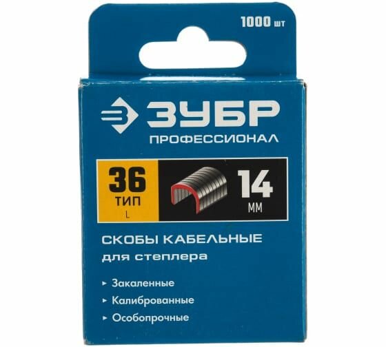 Кабельные скобы для степлера ЗУБР тип 36 14 мм 1000 шт. (31612-14_z01)