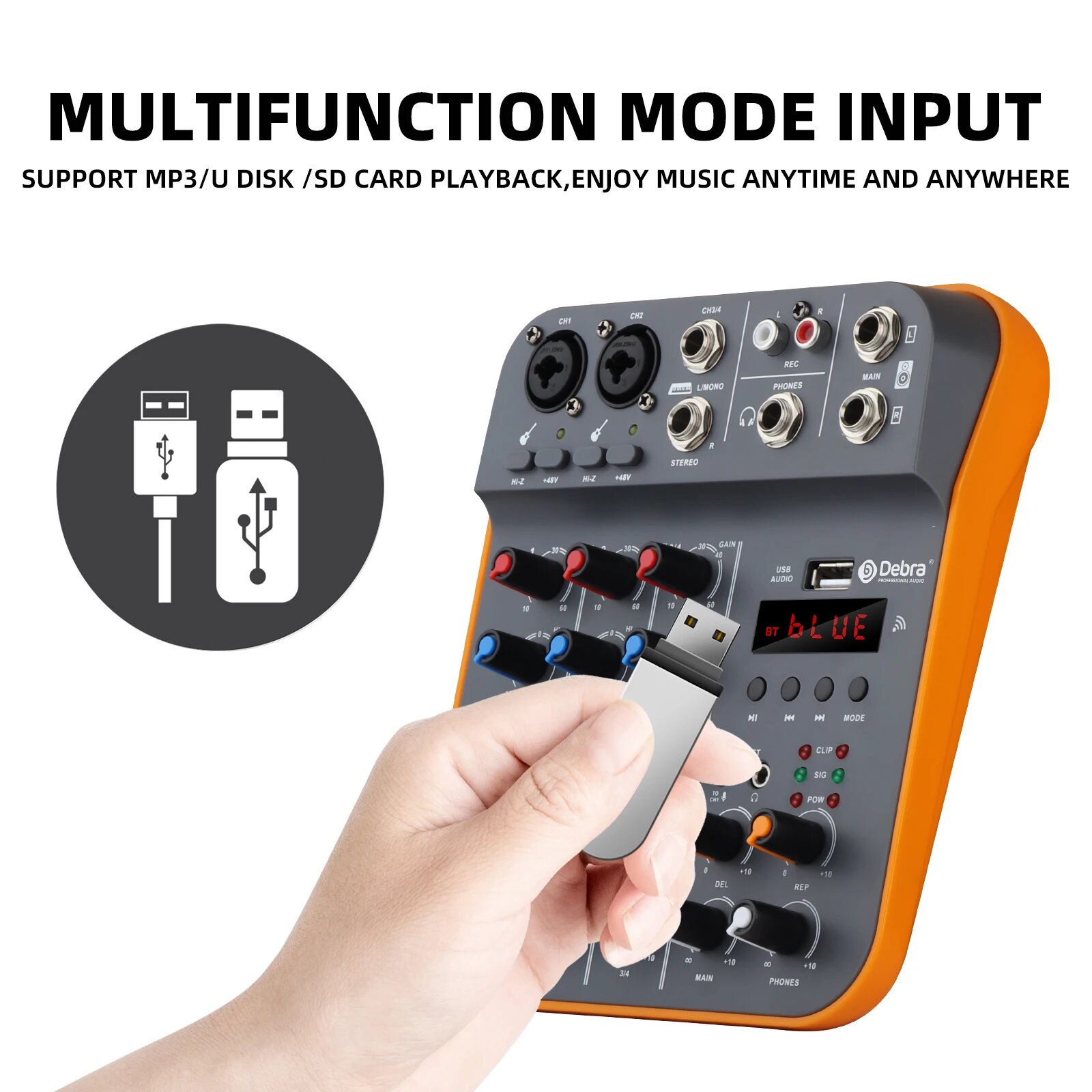 JIY Professional 4-канальный микшерный пульт Мини-USB-микшер со звуковой картой