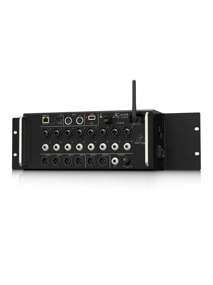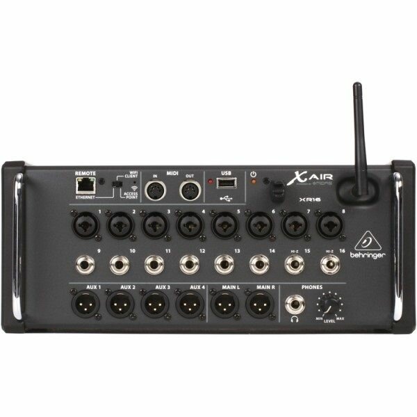 Behringer XR16 цифровой микшер, 8 мик Midas XLR + 8 лин Jack, выходы Main L/R XLR, Aux 1-4 XLR, 16 кан/4FX/6BUS, ETHERNET,WiFi, USB-стерео зап/воспрои