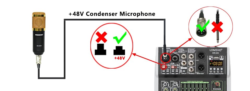 Микшерный пульт 48 В, 6 Channel EU PLUG