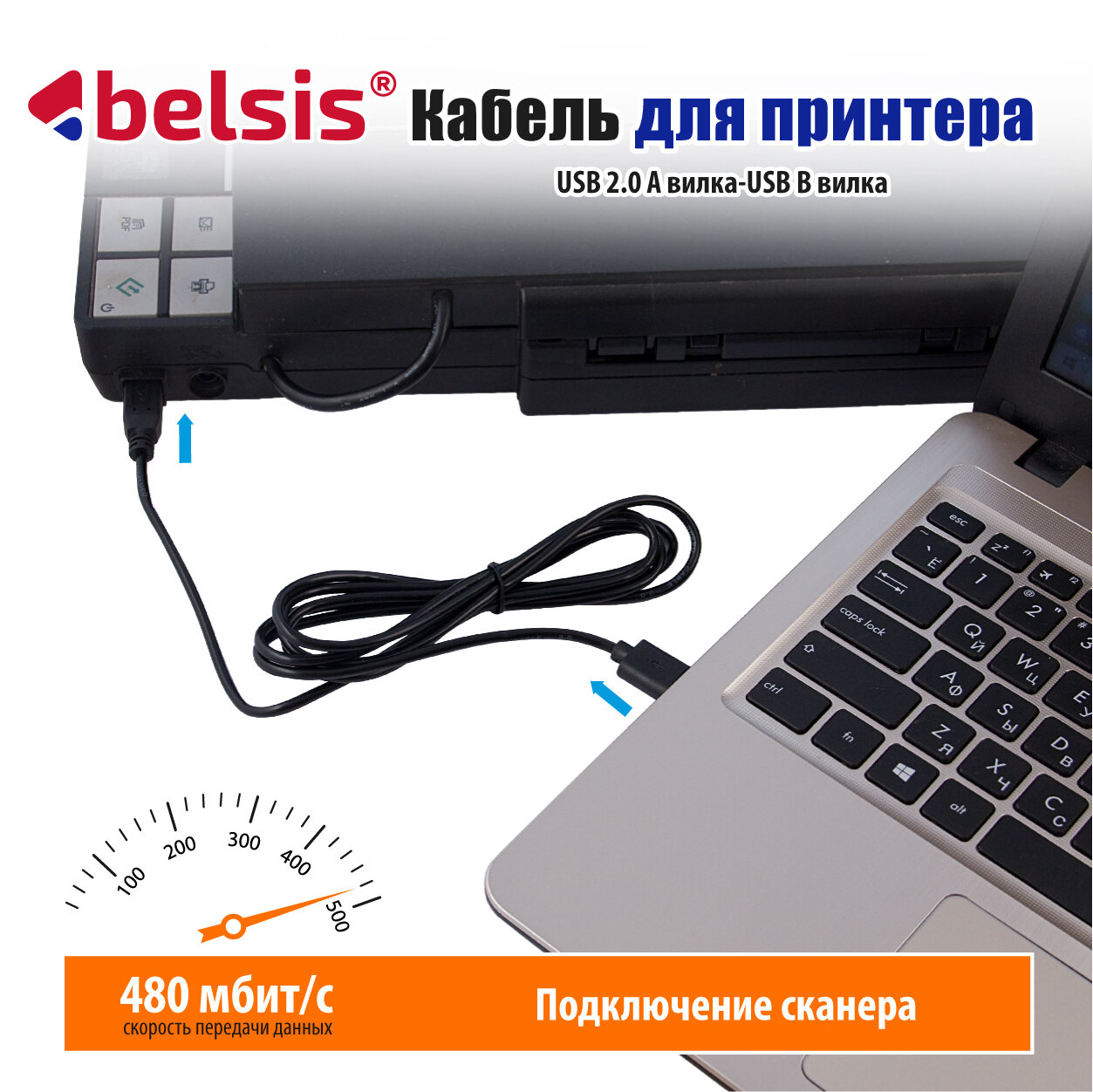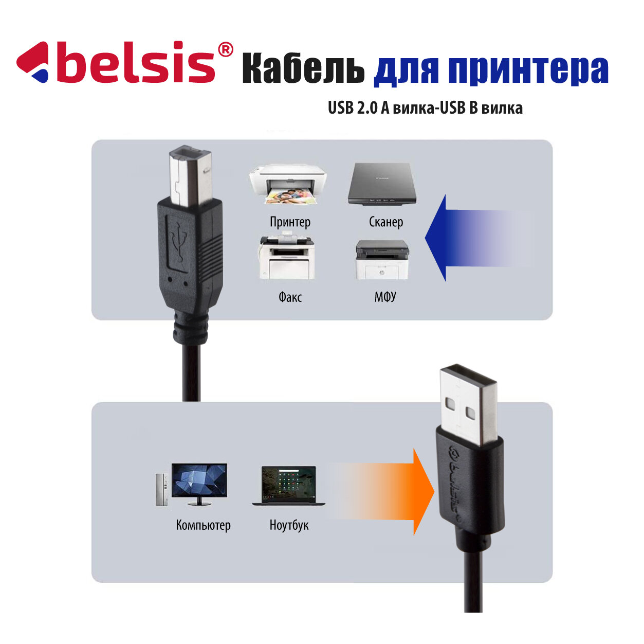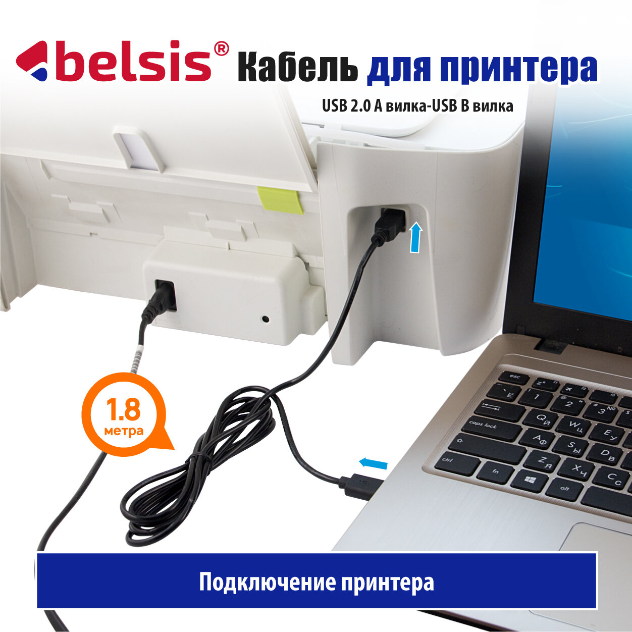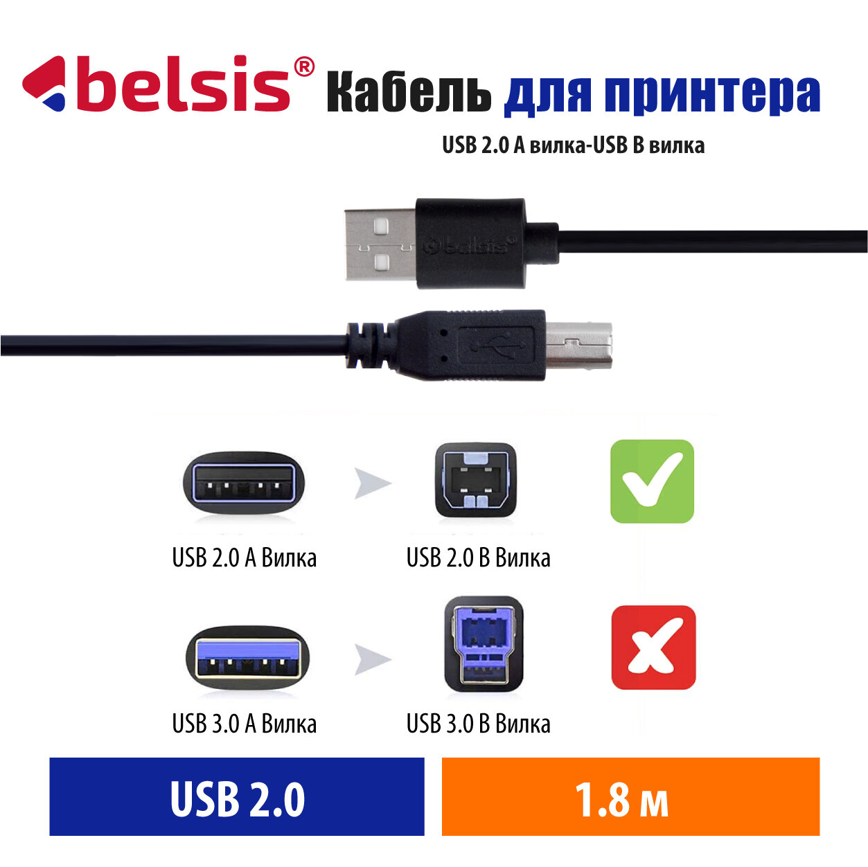Купить Кабель для принтера USB 2.0 A - B, 480 Мбт/с , Belsis ,длина 1,8 метра , для сканера, цифрового пианино, цап и т.д./ SP3097