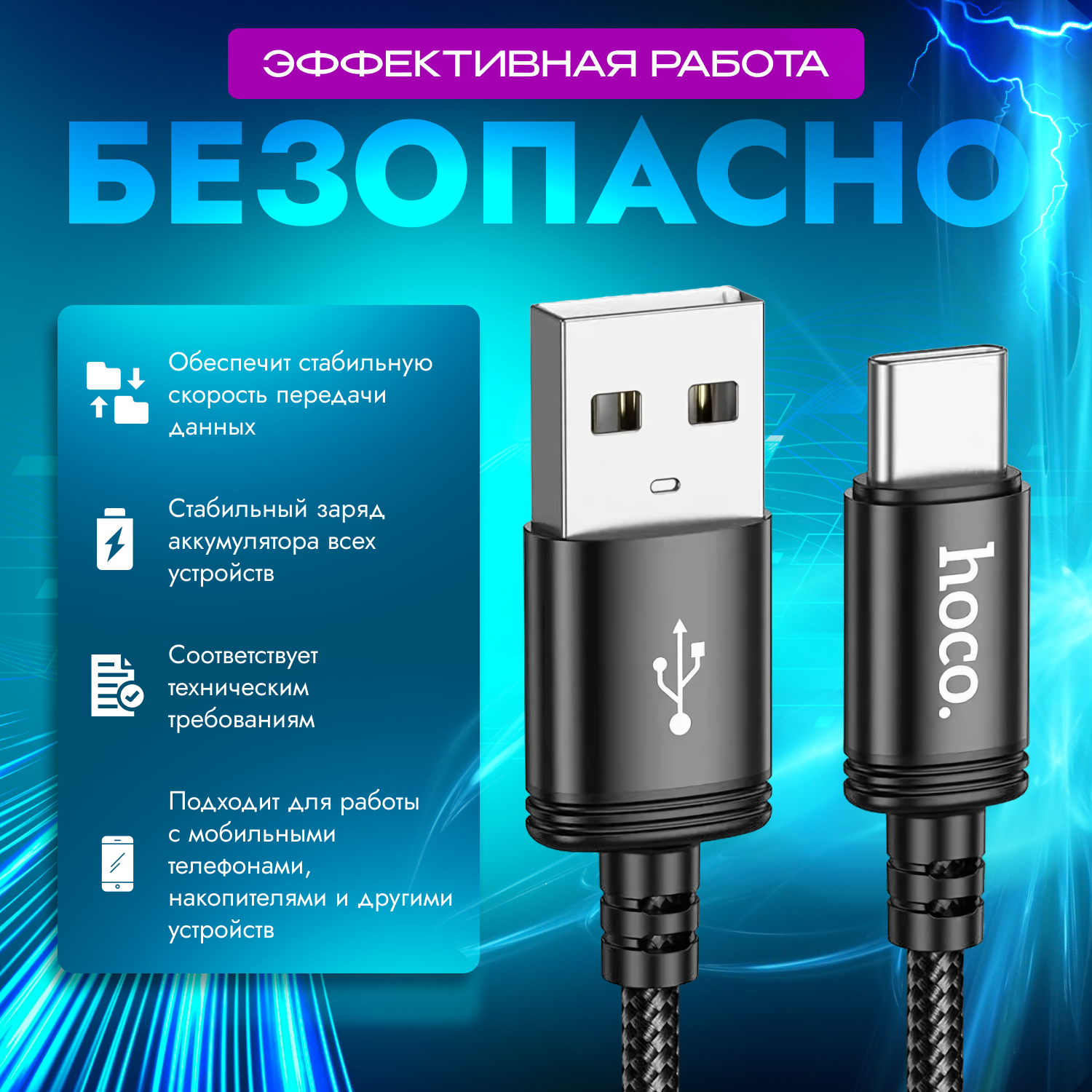 Кабель для быстрой зарядки Type-C 2 метра Hoco X14 , QC 3 А / тканевая оплетка / цвет черный