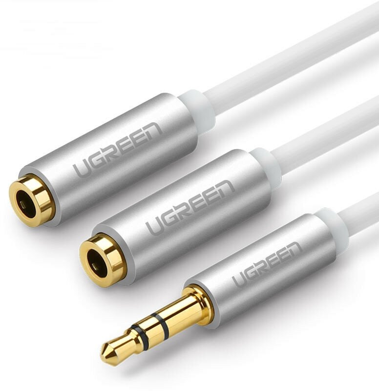 Ugreen 10780 Разветвитель портов аудио 3,5мм UGREEN AV123 (male - 2 female), цвет- белый