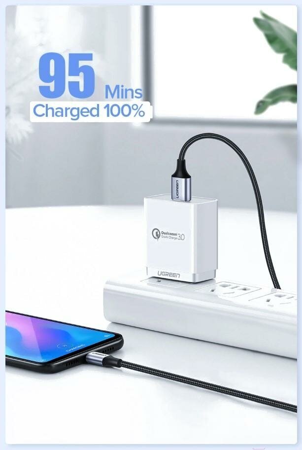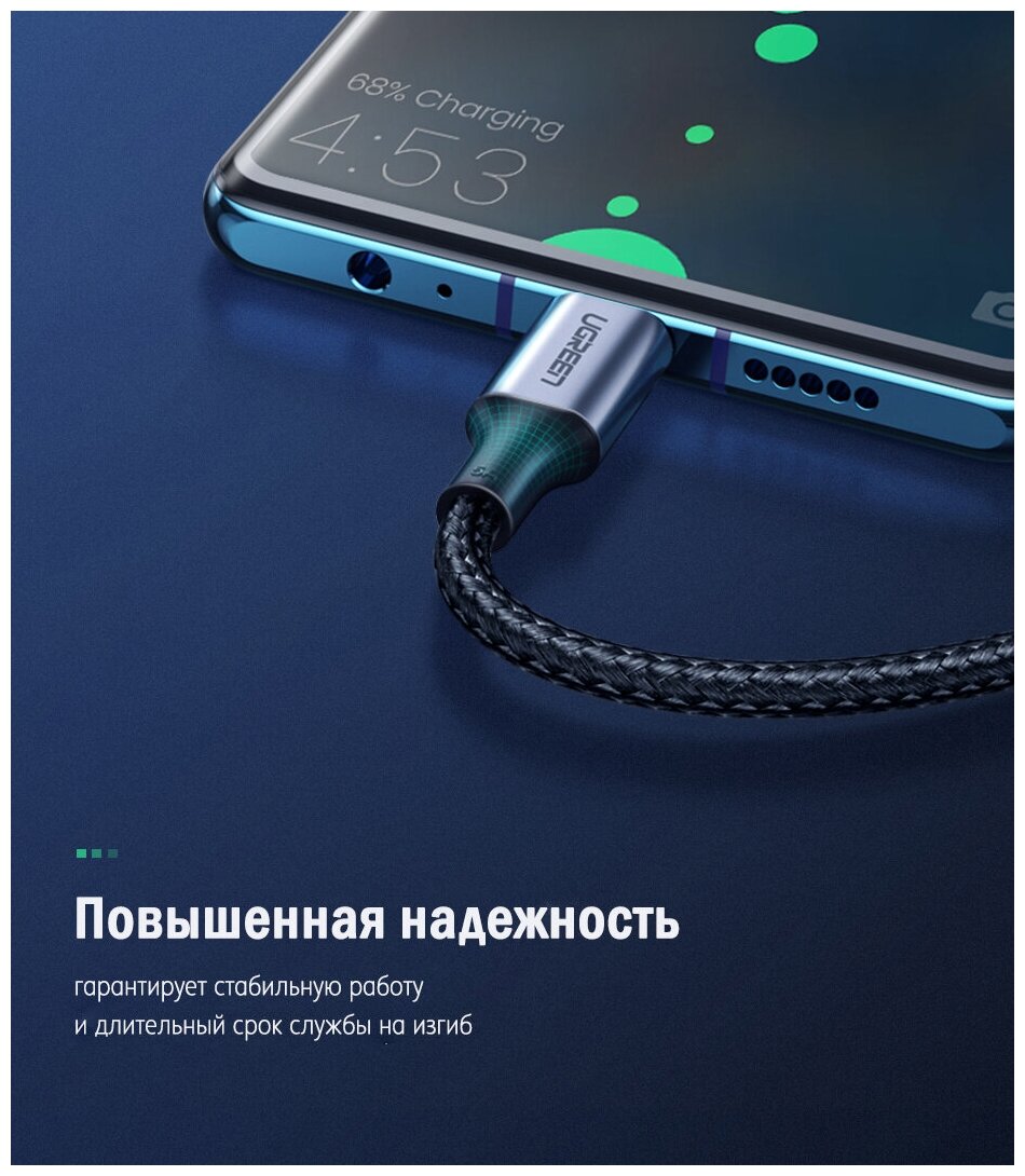 СохранитьКабель UGREEN US288 (60126) USB-A 2.0 to USB-C Cable Nickel Plating Aluminum Braid. Длина 1 м. Цвет: черный. интересное:
