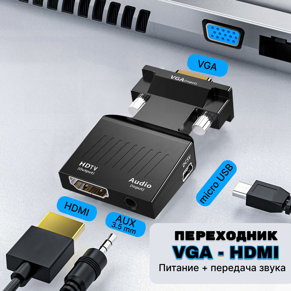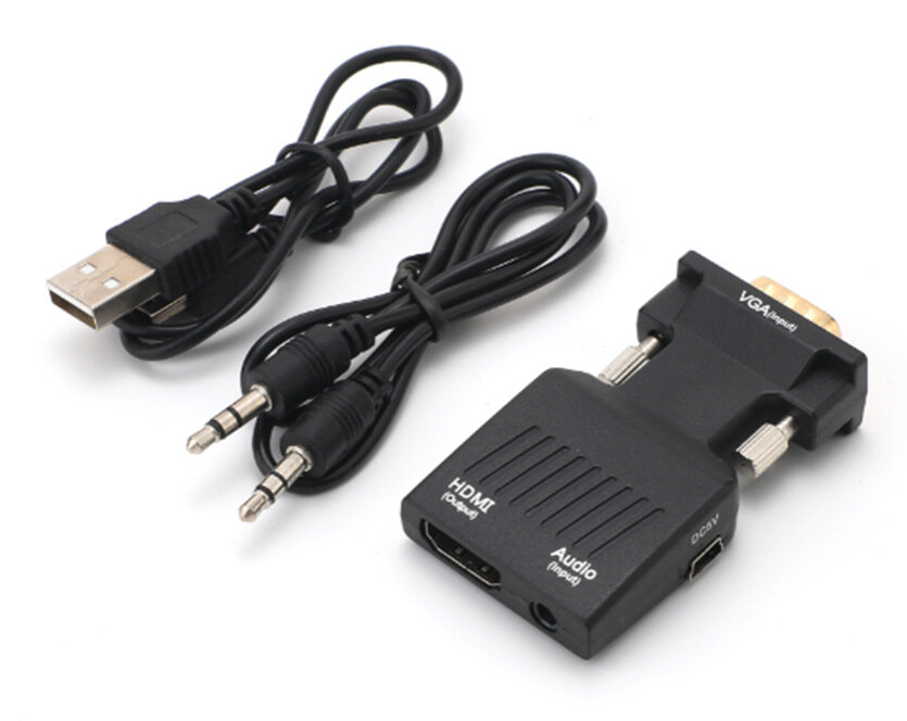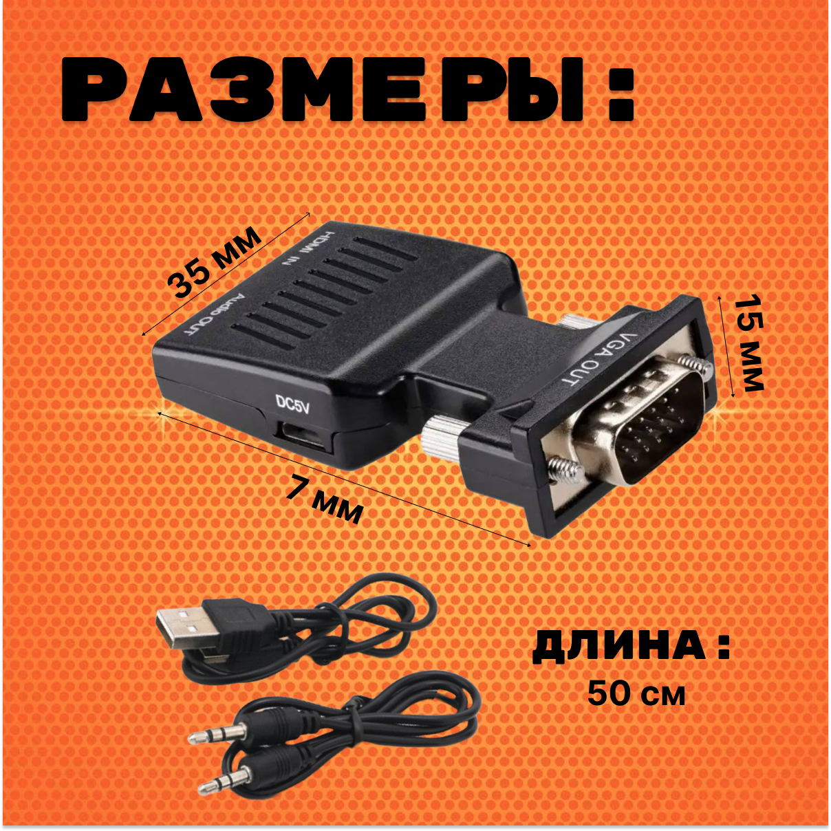Портативный переходник-конвертер VGA-HDMI + звук audio Jack (3,5 mm) + питание (USB - micro USB)