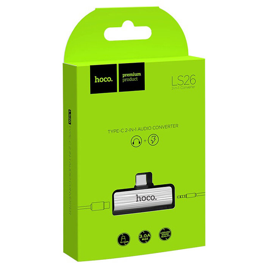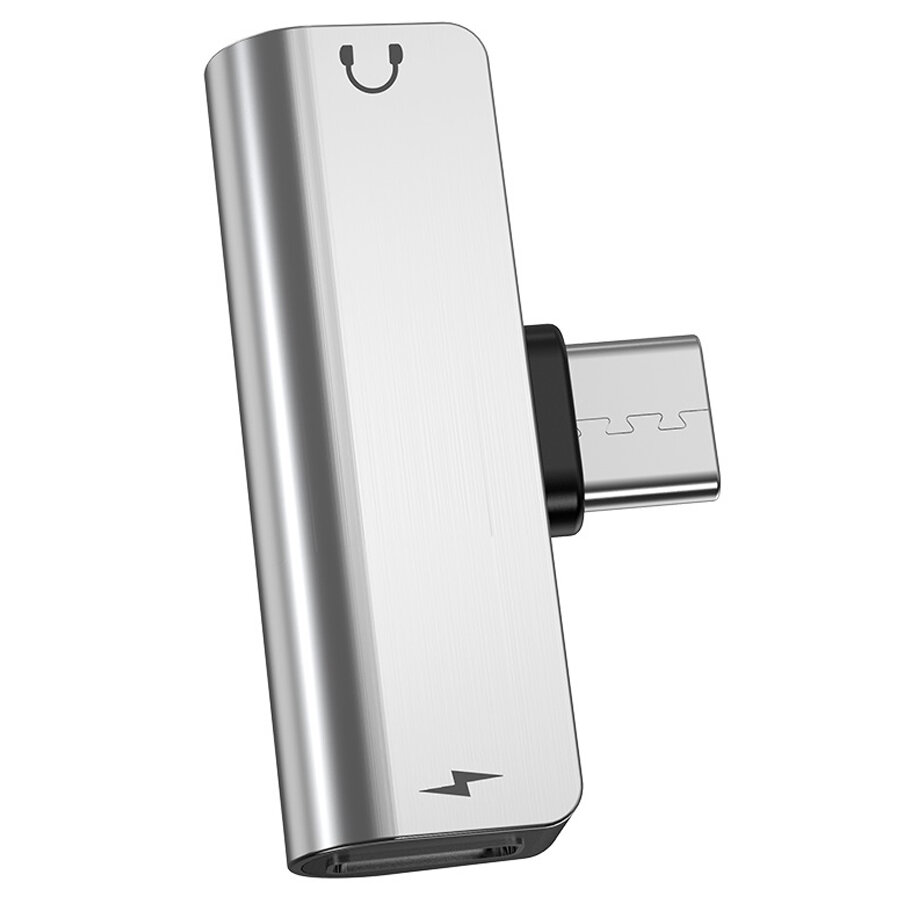 Адаптер Hoco LS26 Type-C на 3.5мм, зарядка и звук, (серебро)