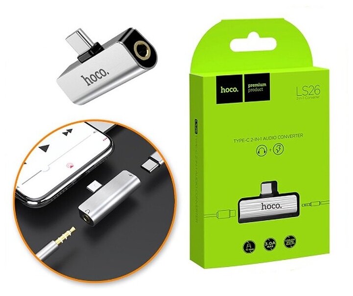 Переходник HOCO LS26, Type-C - Jack 3.5, 1.5А, серебристый интересное: