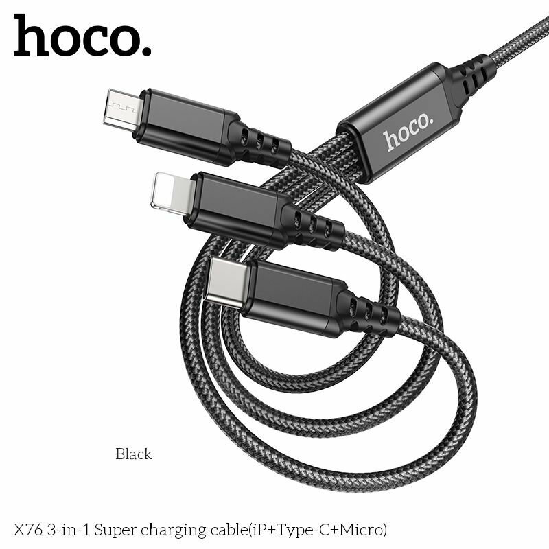 Кабель 3-в-1 Hoco X76 Super зарядный провод/Super charging cable(iP+Type-C+Micro) black/red/blue