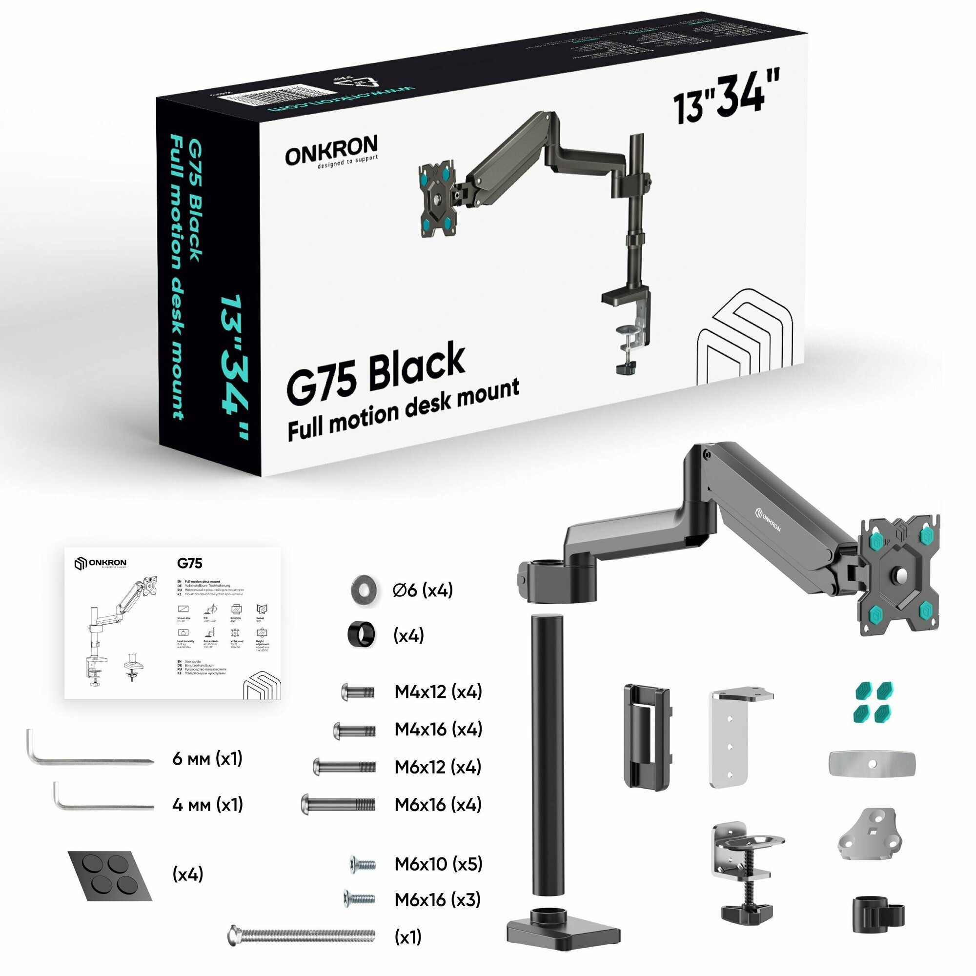 Кронштейн для монитора Onkron G75, настольный, поворот и наклон, черный