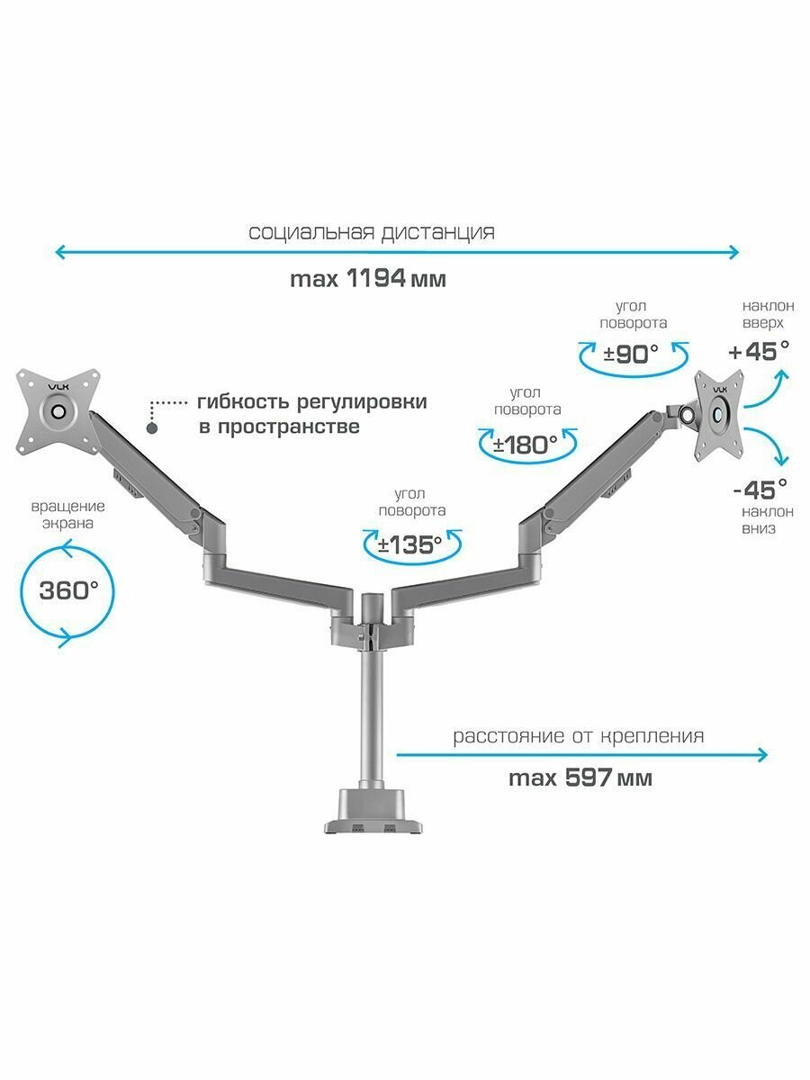 VLK Кронштейн для двух мониторов настольный TRENTO-95 / до 34" / до 2x9 кг интересное: