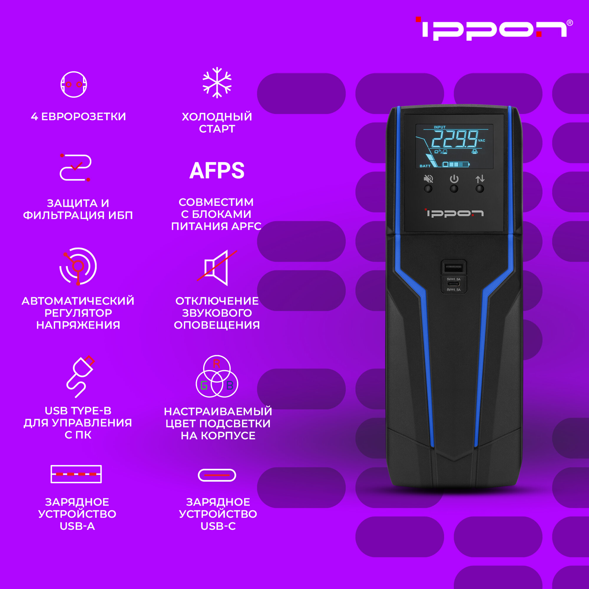 Источник бесперебойного питания Ippon Game Power Pro 1000 интересное: