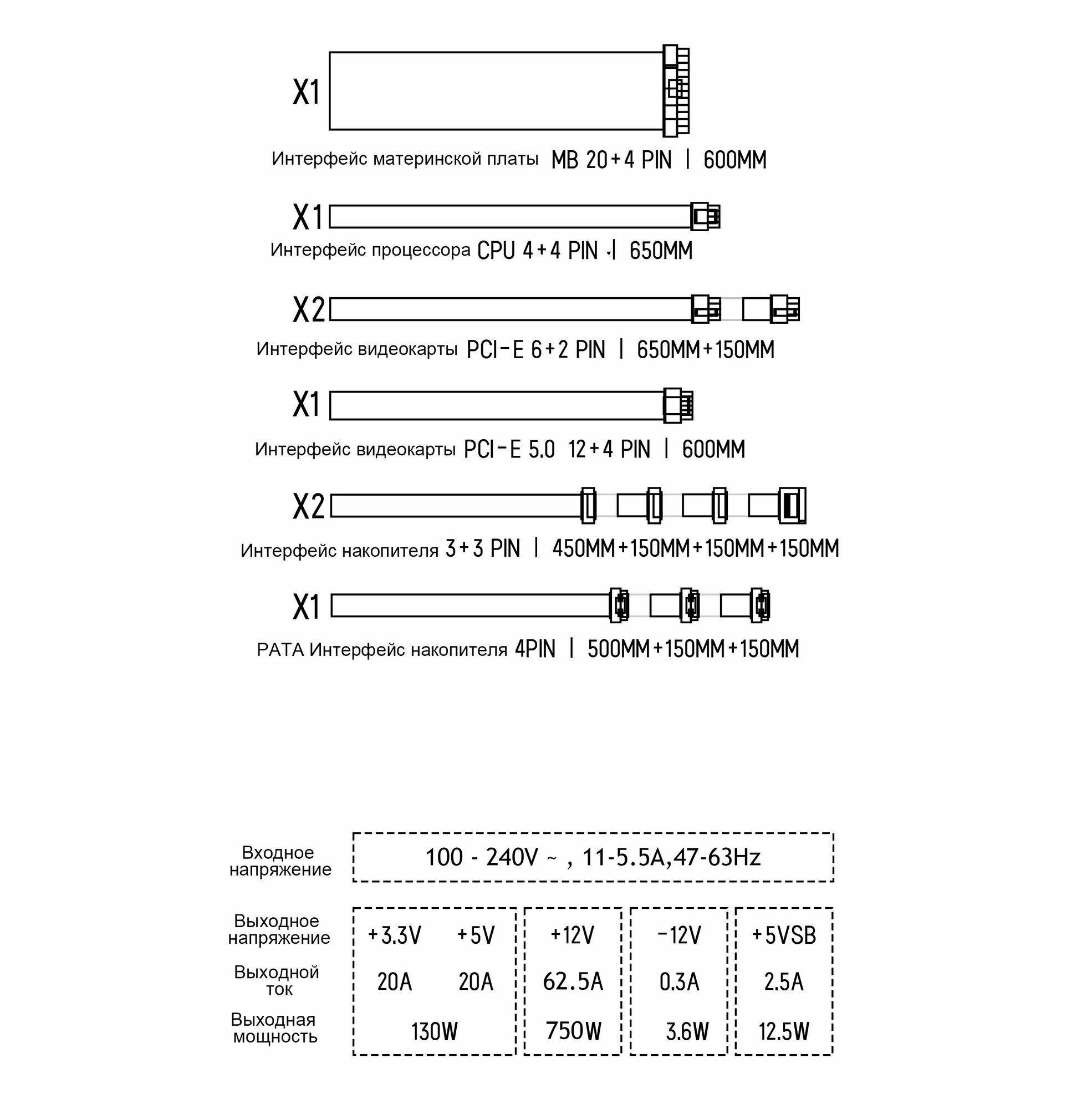 Блок питания для компьютера,полностью модульный, сертификат GOLD, 750W (ватт)