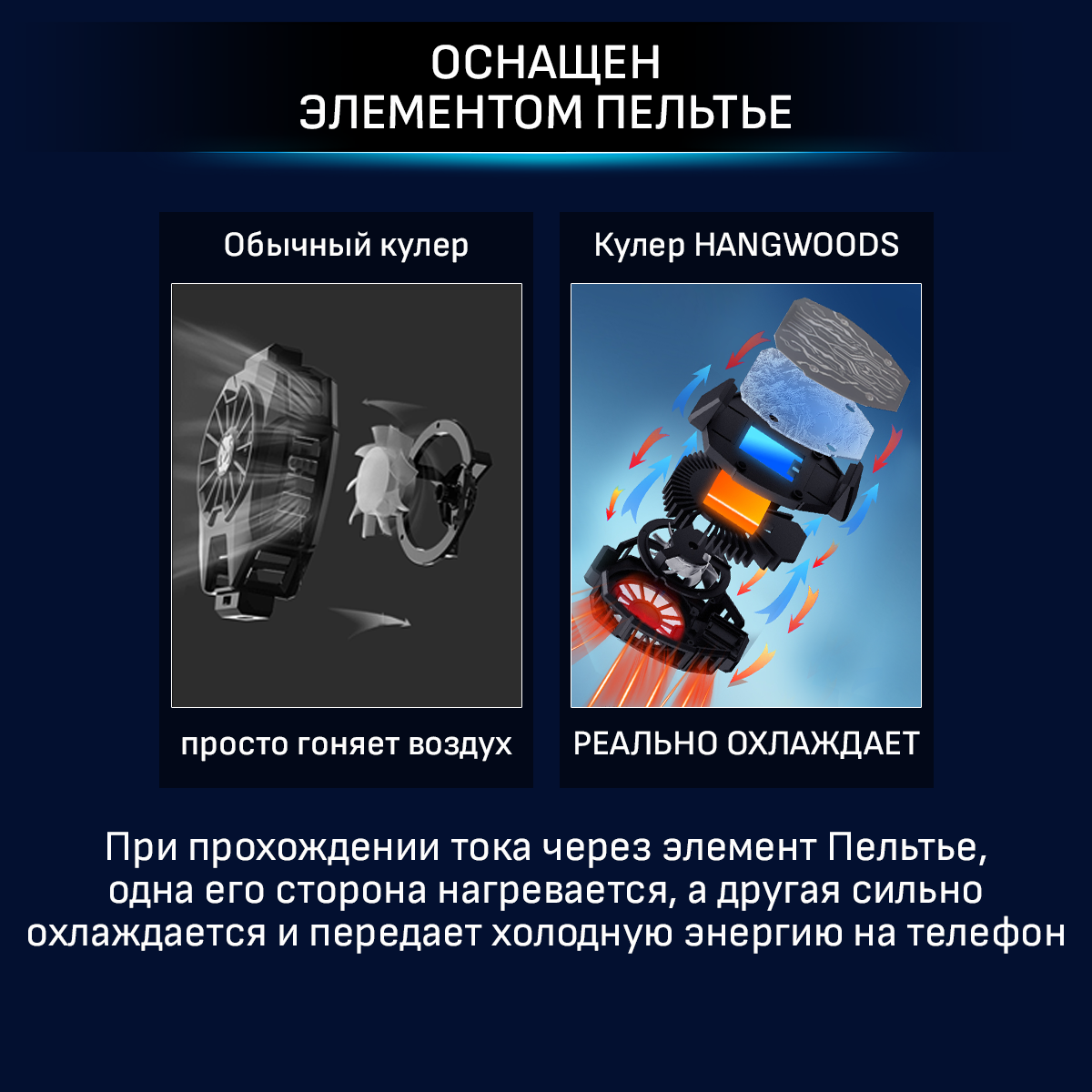 Кулер для охлаждения телефона магнитный Hangwoods, 1 штука с подсветкой