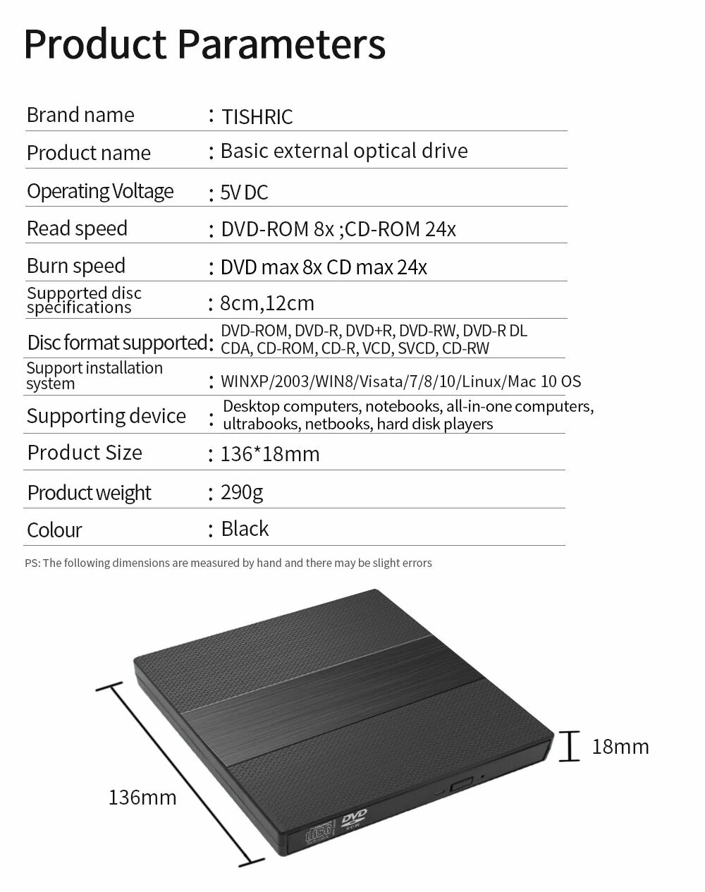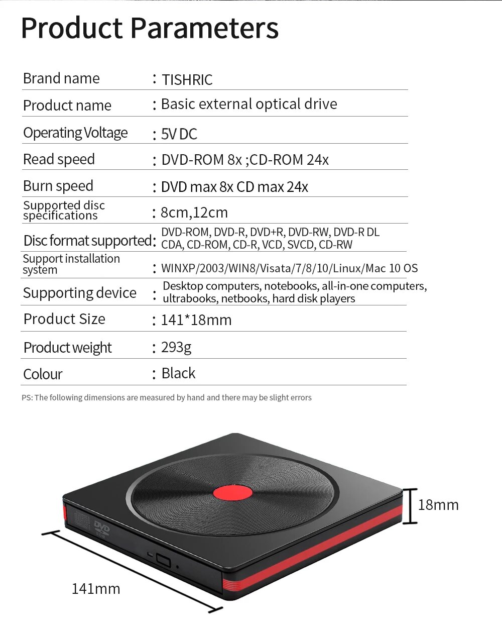 Внешний USB-проигрыватель TISHRIC, устройство для чтения дисков и DVD-проигрывателей, USB 3,0/USB2.0/Type C, внешний DVD-проигрыватель для настольного ПК