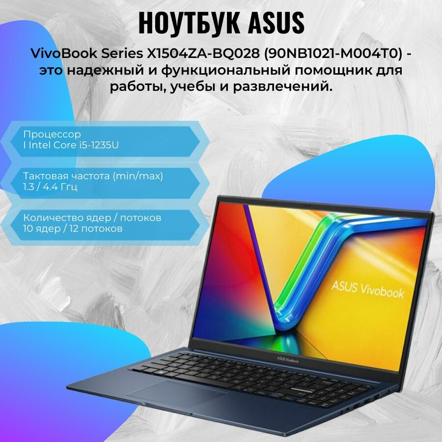 Ноутбук ASUS Vivobook 15 X1504ZA-BQ028, 15.6" (1920x1080) IPS/Intel Core i5-1235U/8ГБ DDR4/512ГБ SSD/Iris Xe Graphics/Без ОС, синий (90NB1021-M004T0) интересное: