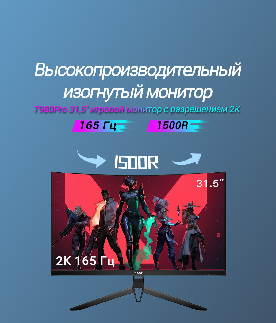Купить Игровой монитор SANC T980 Pro, 32 дюйма, 2K, 165Гц, изогнутый, VA, HDR, MPRT, 1мс