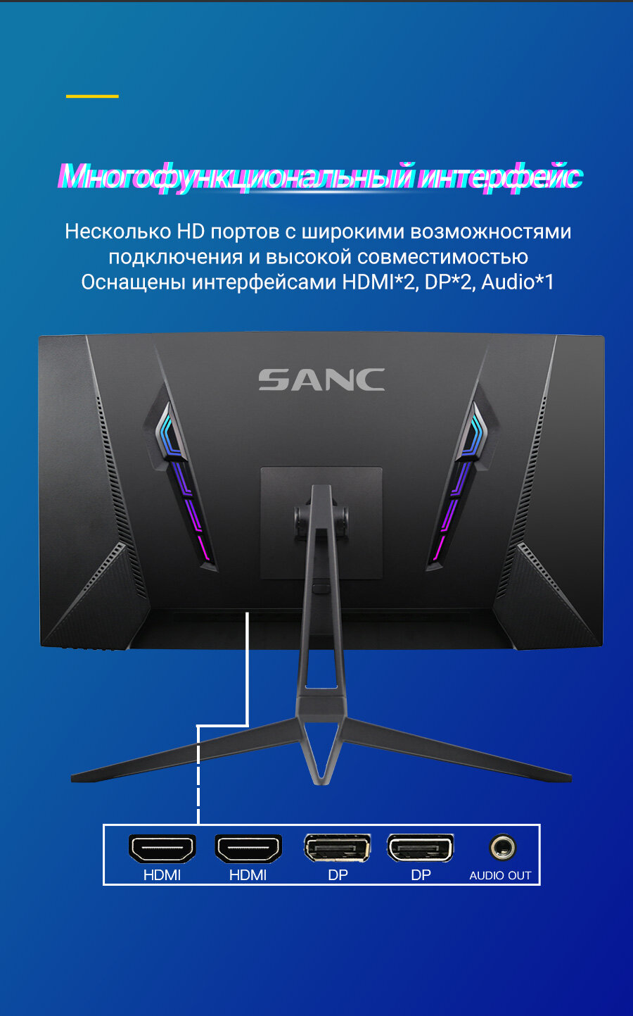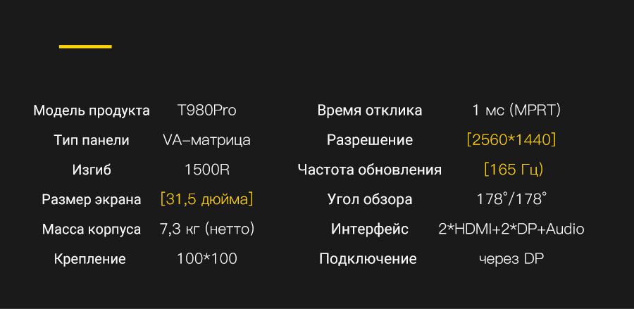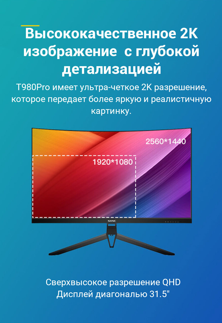 СохранитьИгровой монитор SANC T980 Pro, 32 дюйма, 2K, 165Гц, изогнутый, VA, HDR, MPRT, 1мс интересное: