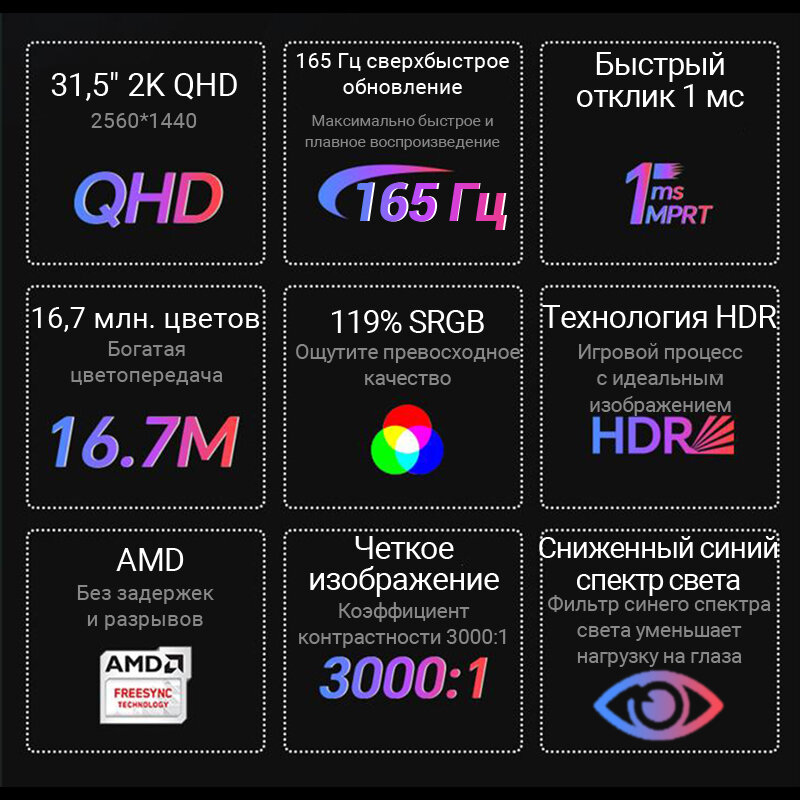 | Макс. частота кадров при макс. разрешении | 165 Гц |
