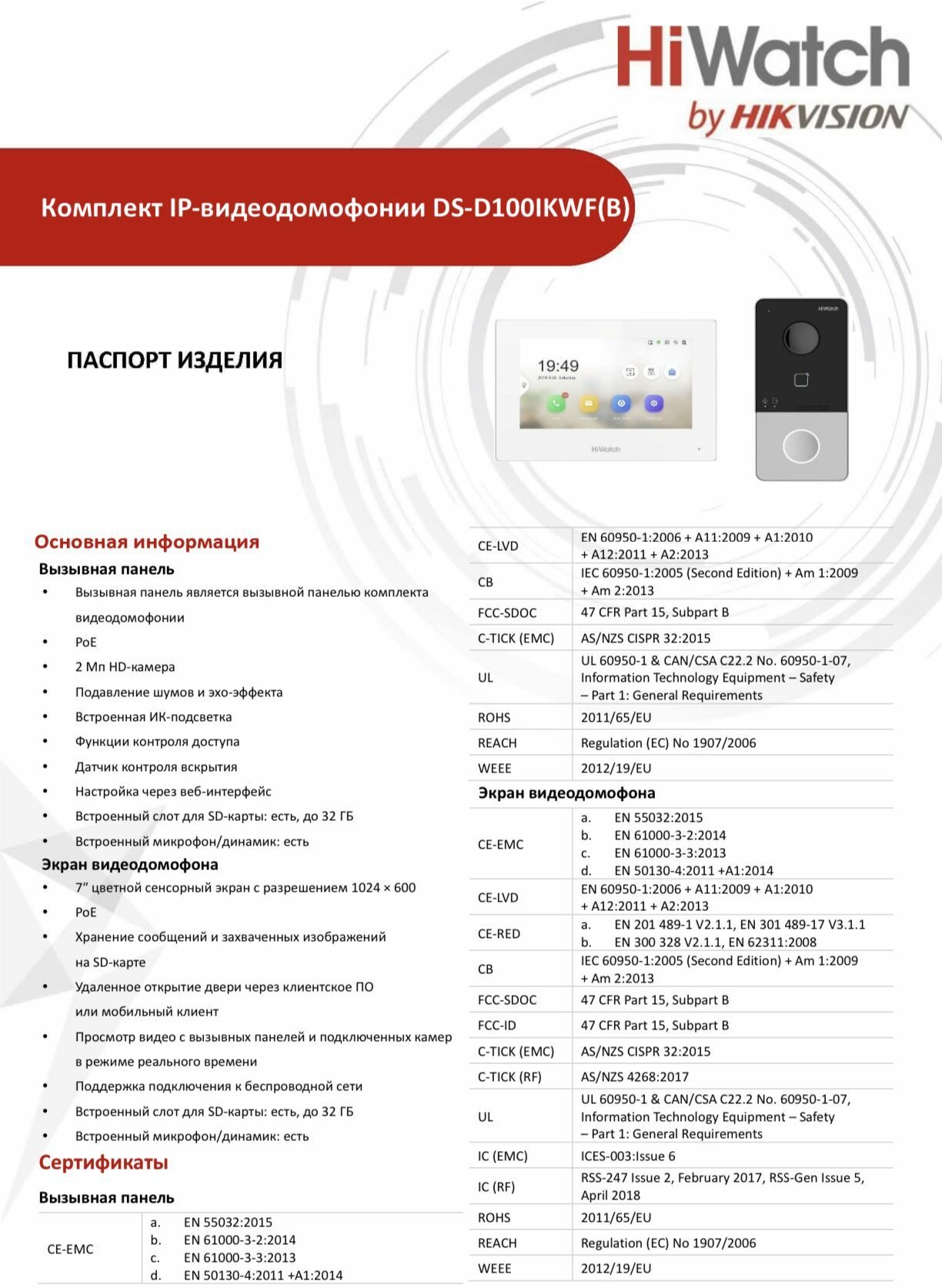 Ниже Вы можете прочитать отзывы на Hiwatch DS-D100IKWF(B), ознакомится с подробными характеристиками, посмотреть интересные обзоры и фотографии на Hiwatch DS-D100IKWF(B).