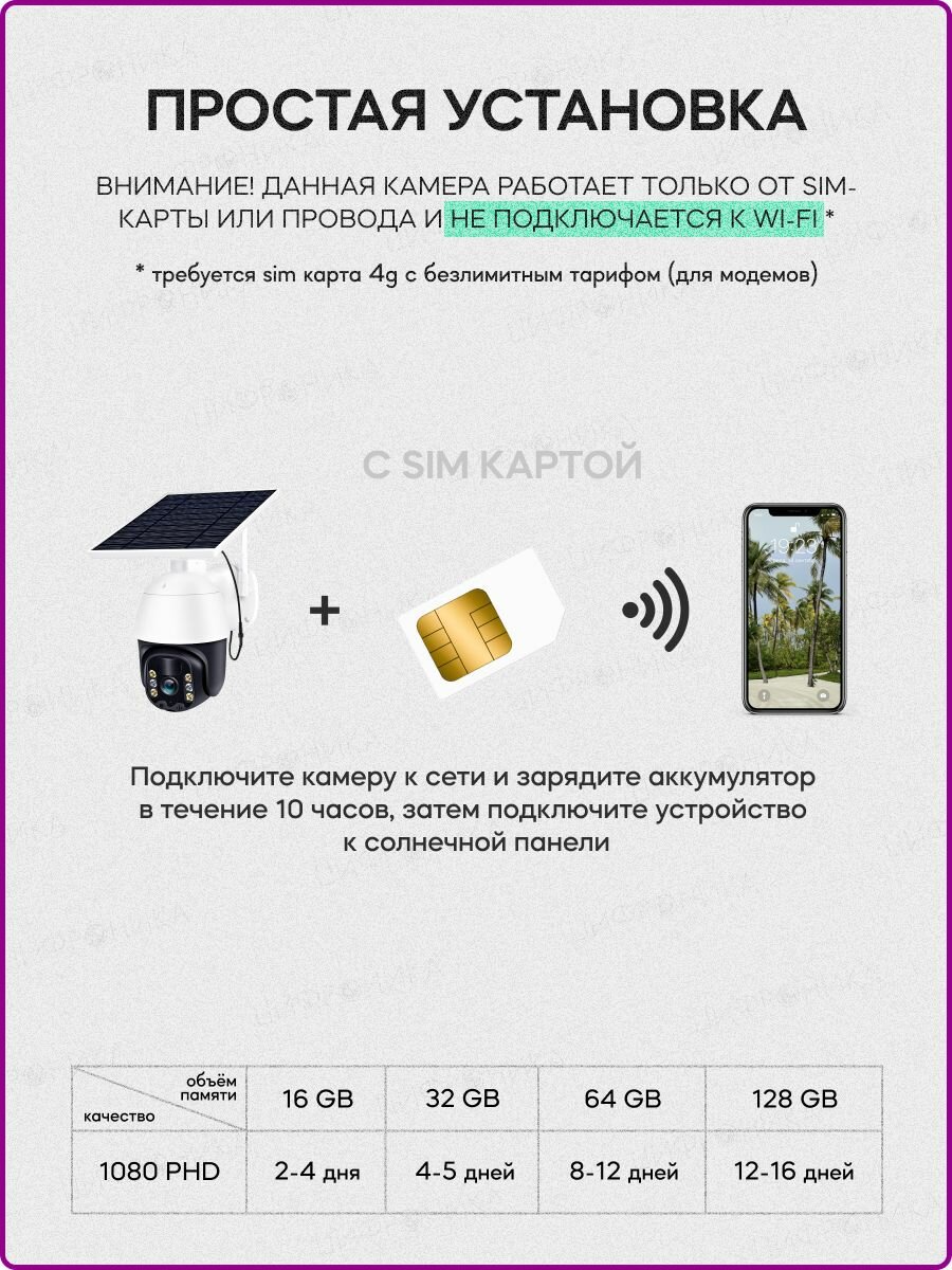 Уличная камера видеонаблюдения ip 4G видеокамера поворотная ночная съемка датчик движения работает только от сим карты