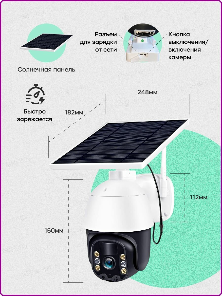 СохранитьКамера видеонаблюдения 4G PTZ IP Цифроника 4G-solar уличная автономная на солнечной батарее 2304 1296px 3Mp, работает от сим карты интересное: