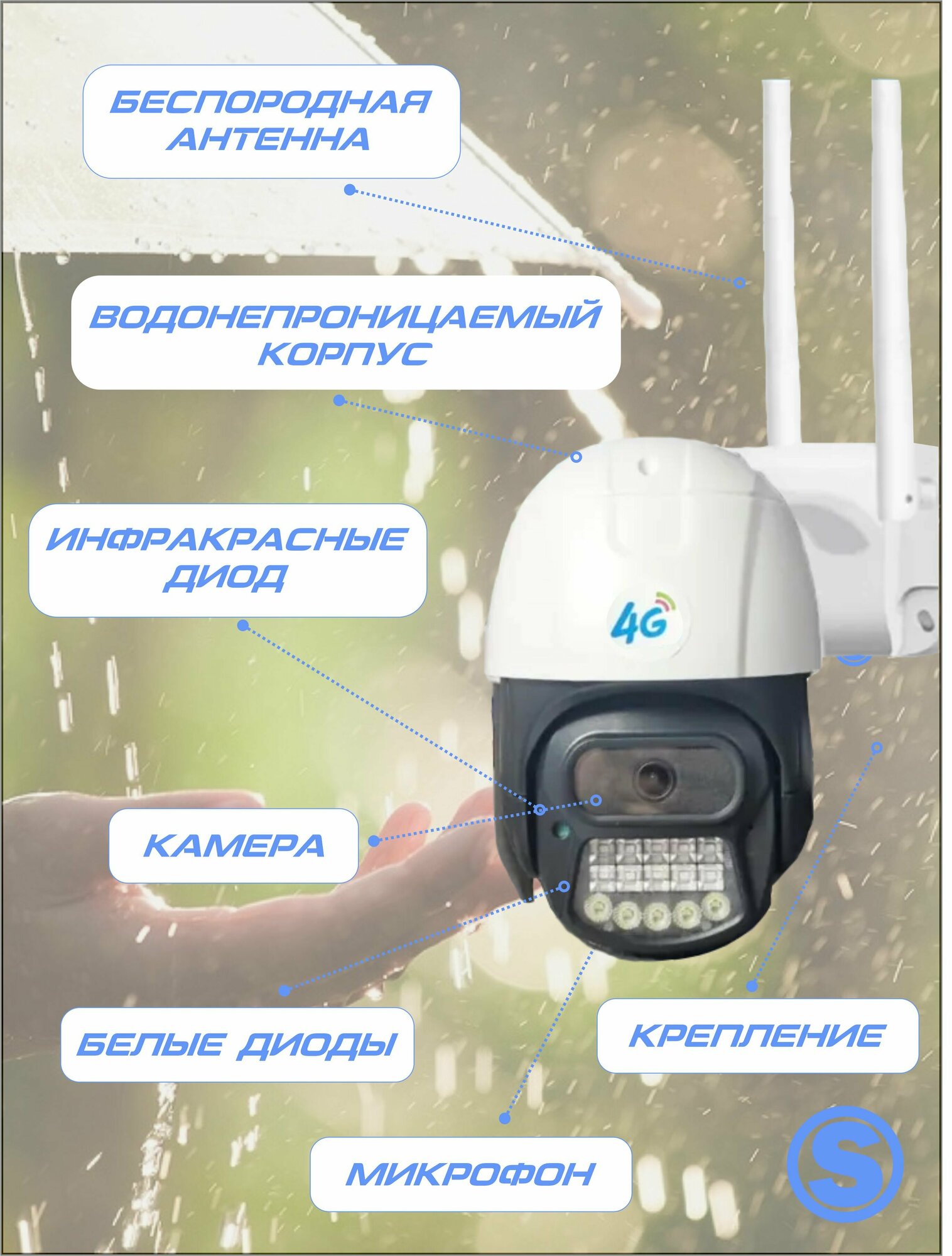 Беспроводная поворотная камера видеонаблюдения с 4G и Wi-Fi, 4 мегапикселя, IP66