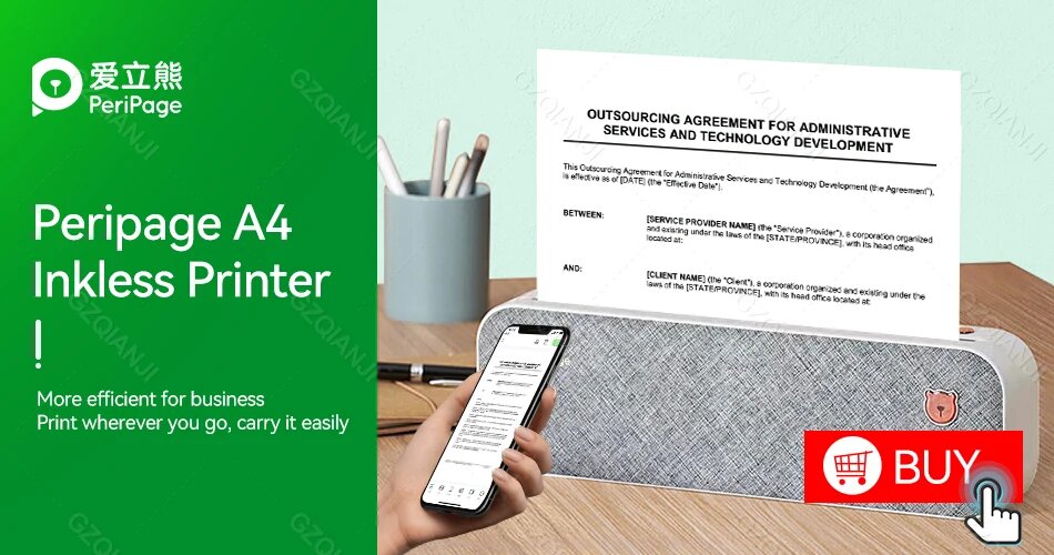 Термопринтер GZQIANJI PeriPage A4, 2-3Y Paper 4Rolls