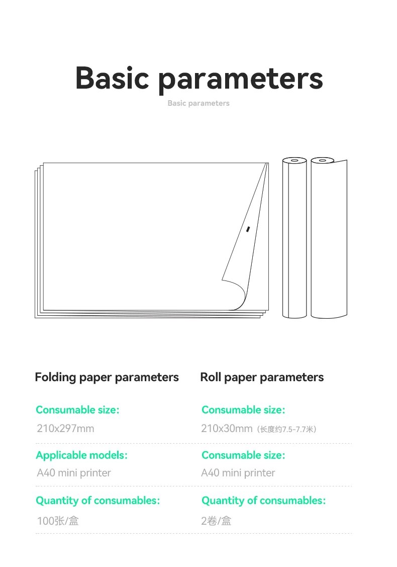 Мини-принтер A4 PeriPage, 10-15Y Paper 100PCS