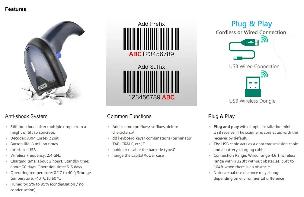 NETUM W8-X и W6 Беспроводные сканеры штрих-кодов, W6 Wireless CCD