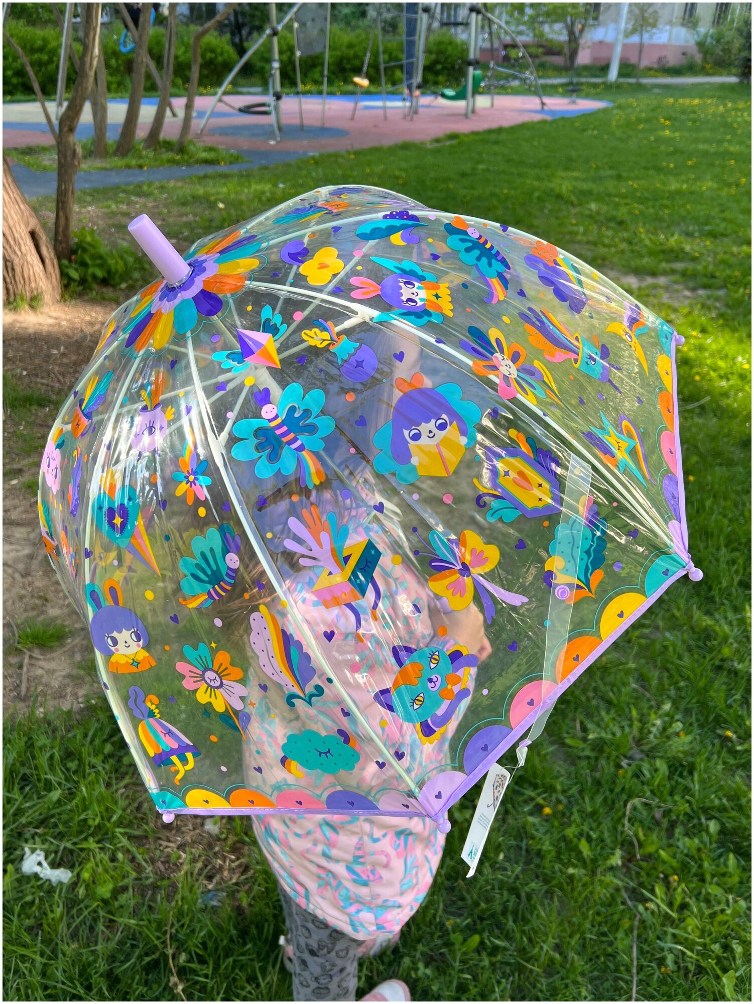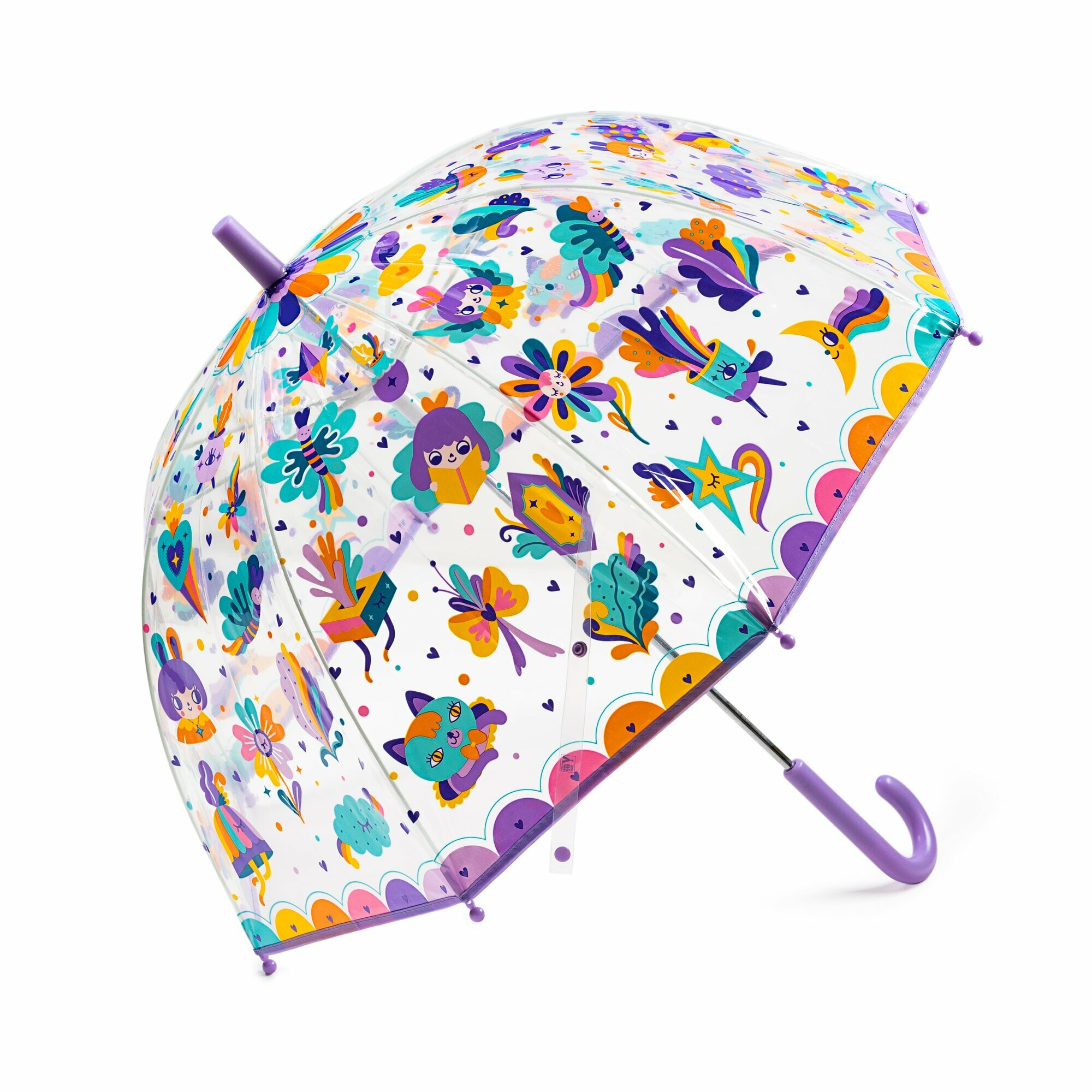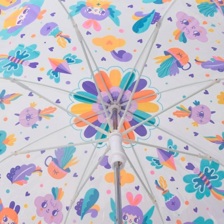 | Дополнительная информация | Детский зонтик Радуга от французской компании Djeco не даст скучать вашему ребенку даже в самый пасмурный день и подарит массу приятных ощущений от прогулок в дождливую погоду. Этот зонтик не только отлично справляется со своей прямой обязанностью – защитой от дождя, но и поднимет настроение своим привлекательным и ярким дизайном с изображением цветов, бантов, зверюшек и малышей. Ваш малыш с удовольствием будет прятаться от дождя под ярким зонтиком с красивым рисунком. Благодаря прозрачному материалу ребенок сможет наблюдать за погодными изменениями, а глубокий купол хорошо защитит голову и плечи любопытного малыша. |