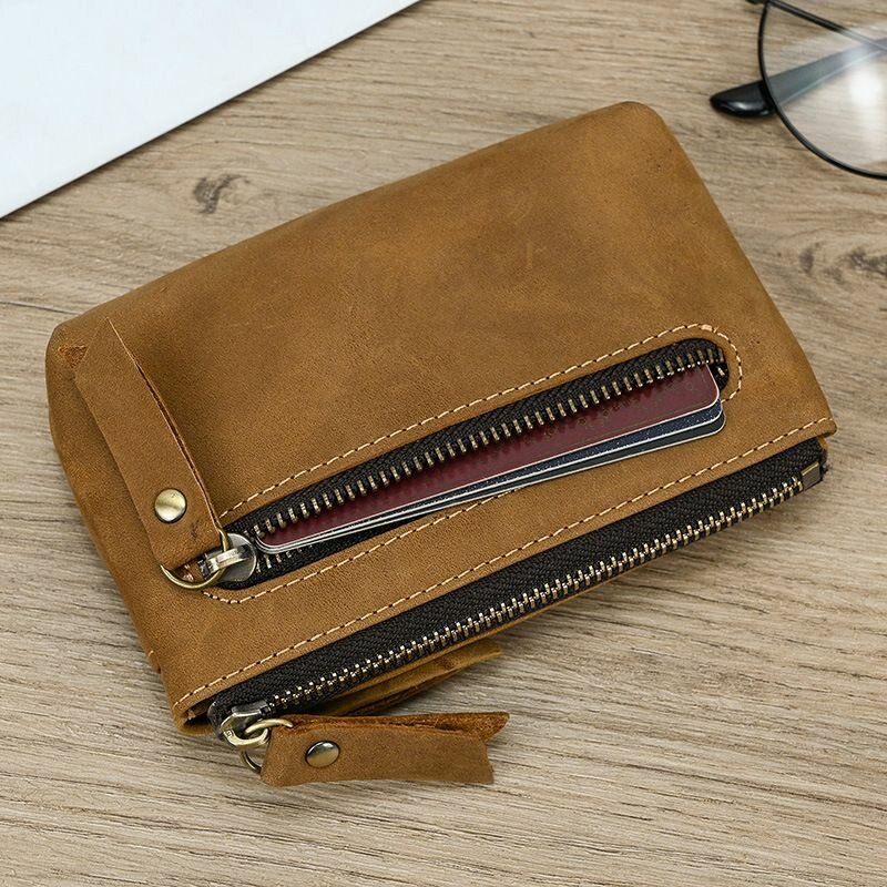Ключница кожаная, кошелек, отделение для монет, отделение для карт, коричневый