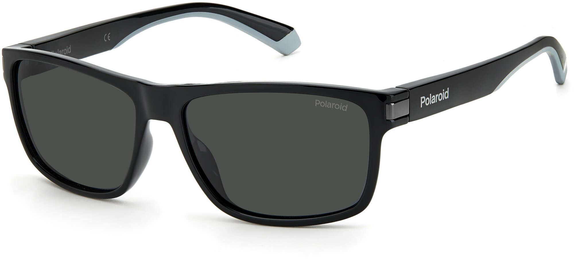 Мужские солнцезащитные очки Polaroid PLD 2121/S 0VK 5X, цвет: черный, цвет линзы: голубой, прямоугольные, поликарбонат