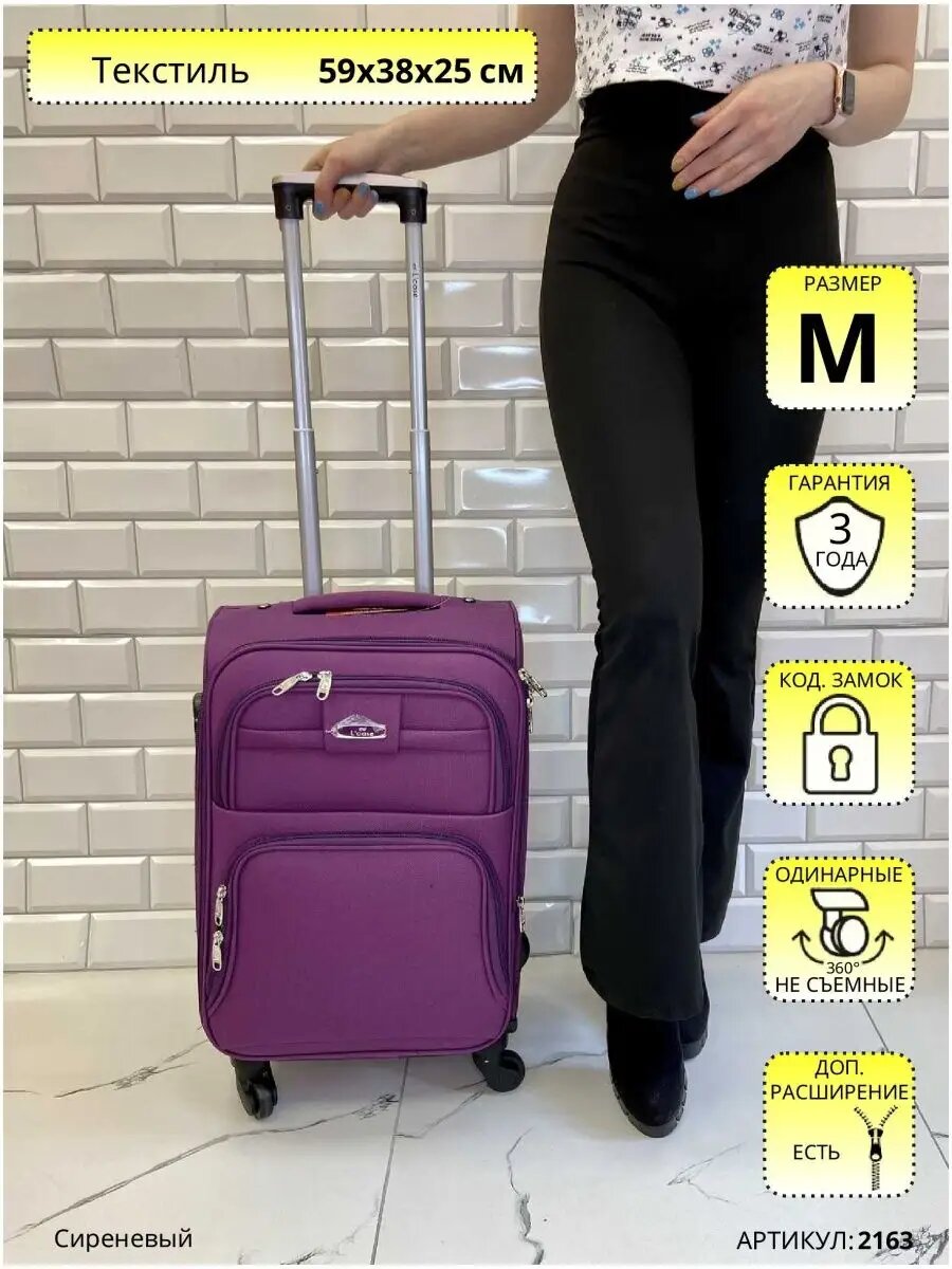 Чемодан на колесах M средний, фиолетовый - Чемодан тканевый, семейный Lcase