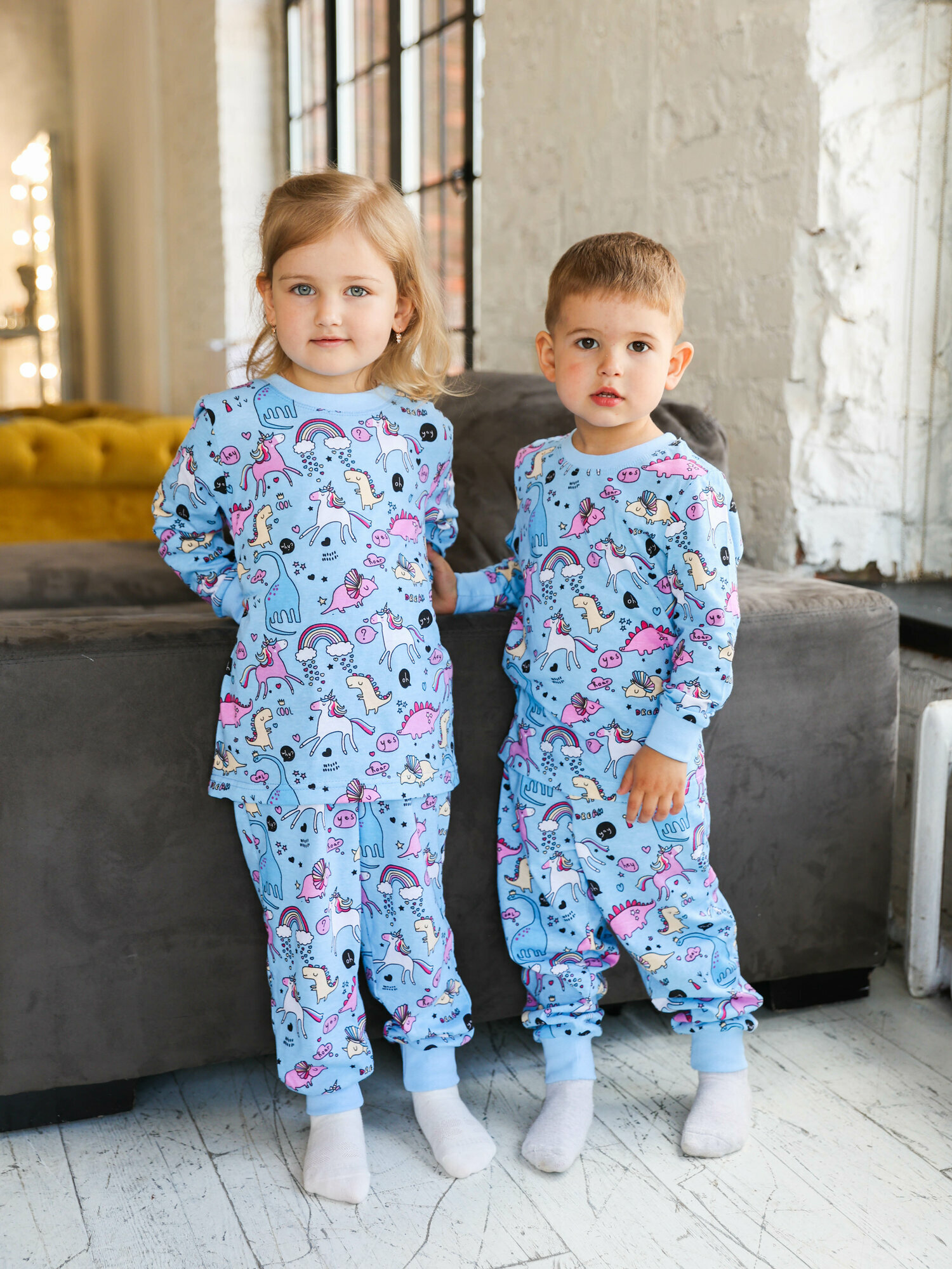 Пижама детская летняя с длинным рукавом Miko Yumi Единороги и радуга размер 98