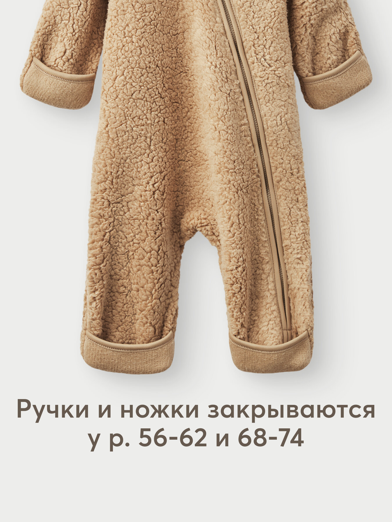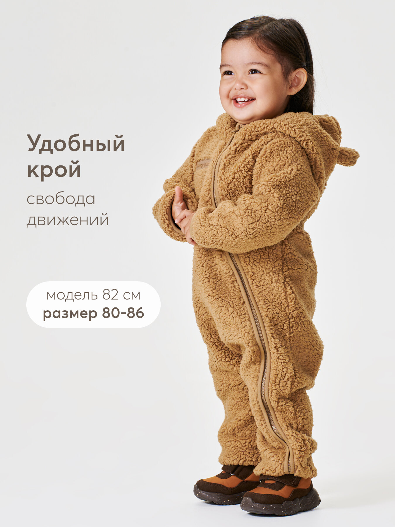 Сохранить89054, Комбинезон для новорожденных Happy Baby, флисовый, с ушками, демисезонный, коричневый, размер 80-86 интересное: