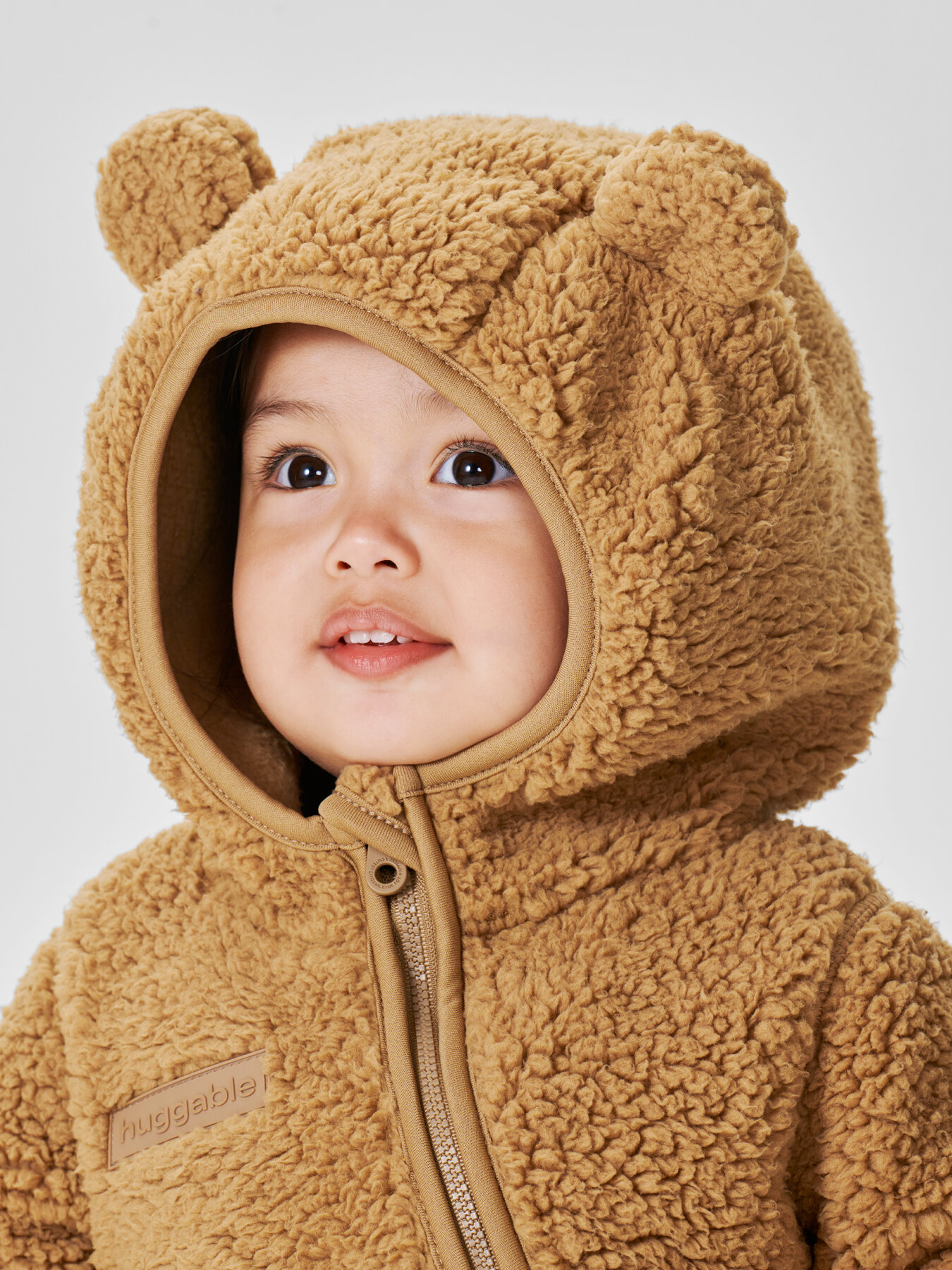 89054, Комбинезон для новорожденных Happy Baby, флисовый, с ушками, демисезонный, коричневый, размер 56-62