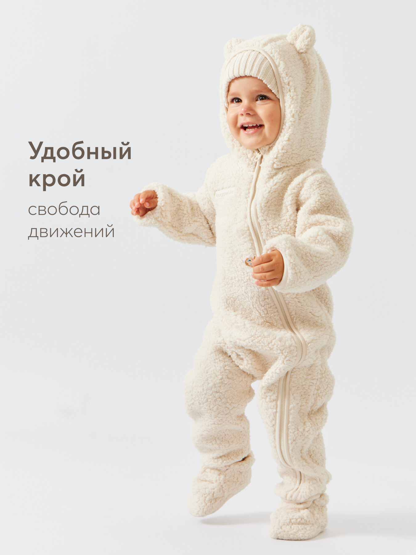 Сохранить89054, Комбинезон для новорожденных Happy Baby, флисовый, с ушками, демисезонный, молочный, размер 68-74 интересное: