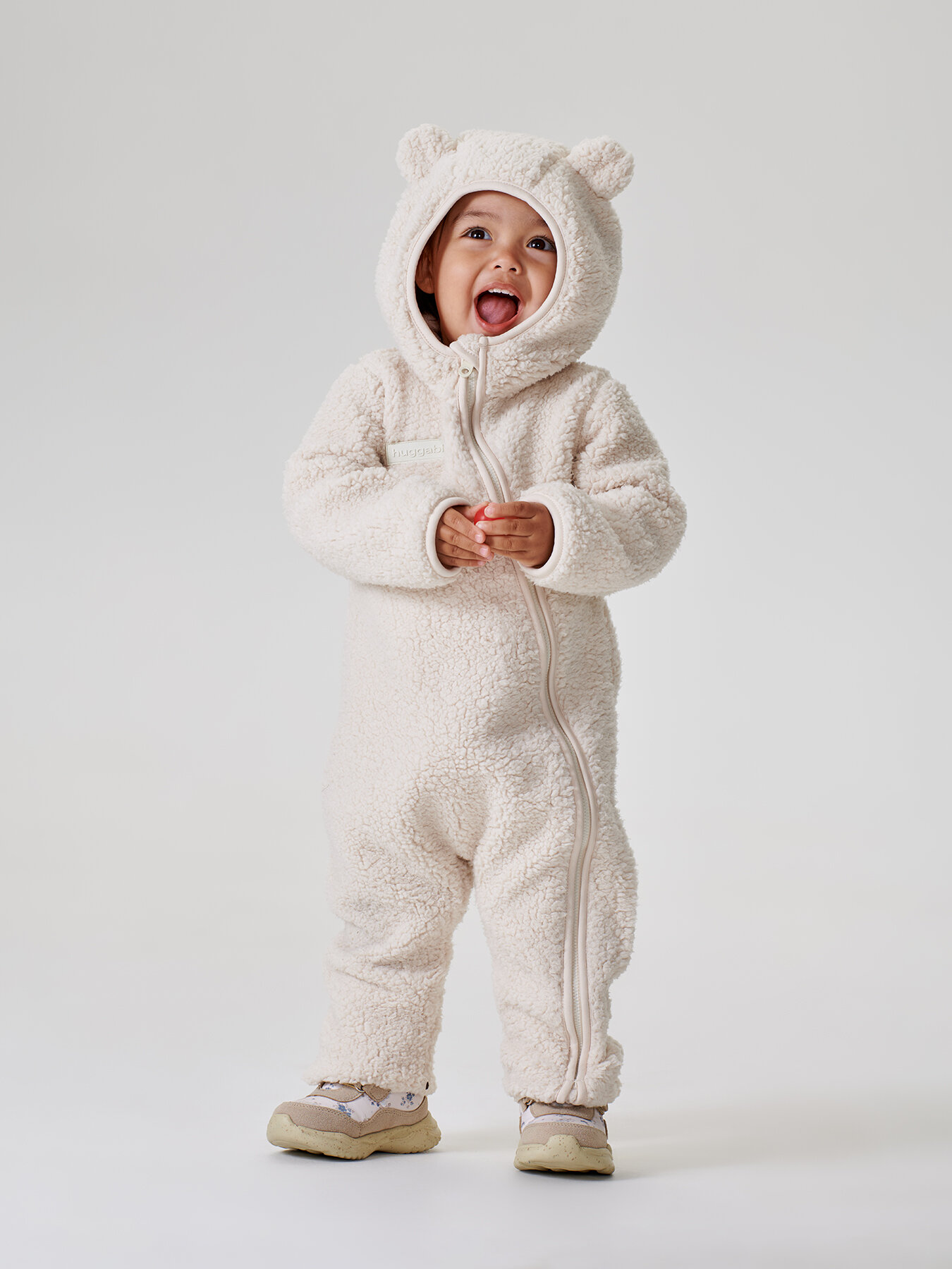Купить 89054, Комбинезон для новорожденных Happy Baby, флисовый, с ушками, демисезонный, молочный, размер 68-74