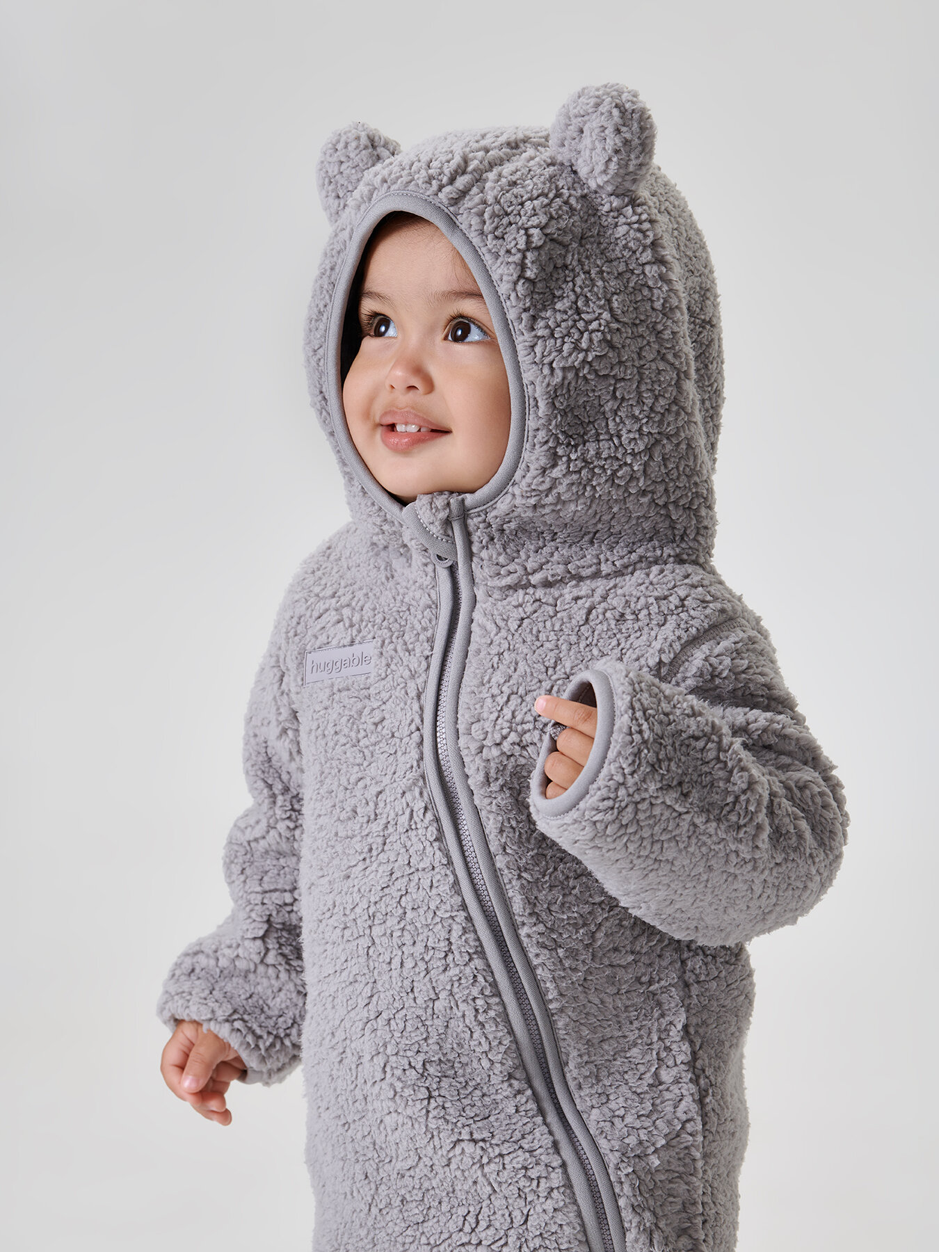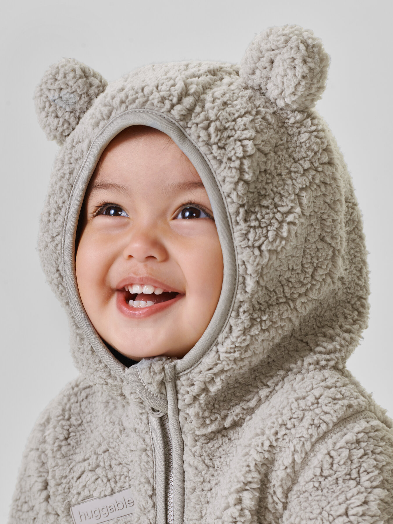 89054, Комбинезон для новорожденных Happy Baby, флисовый, с ушками, демисезонный, серый, размер 80-86