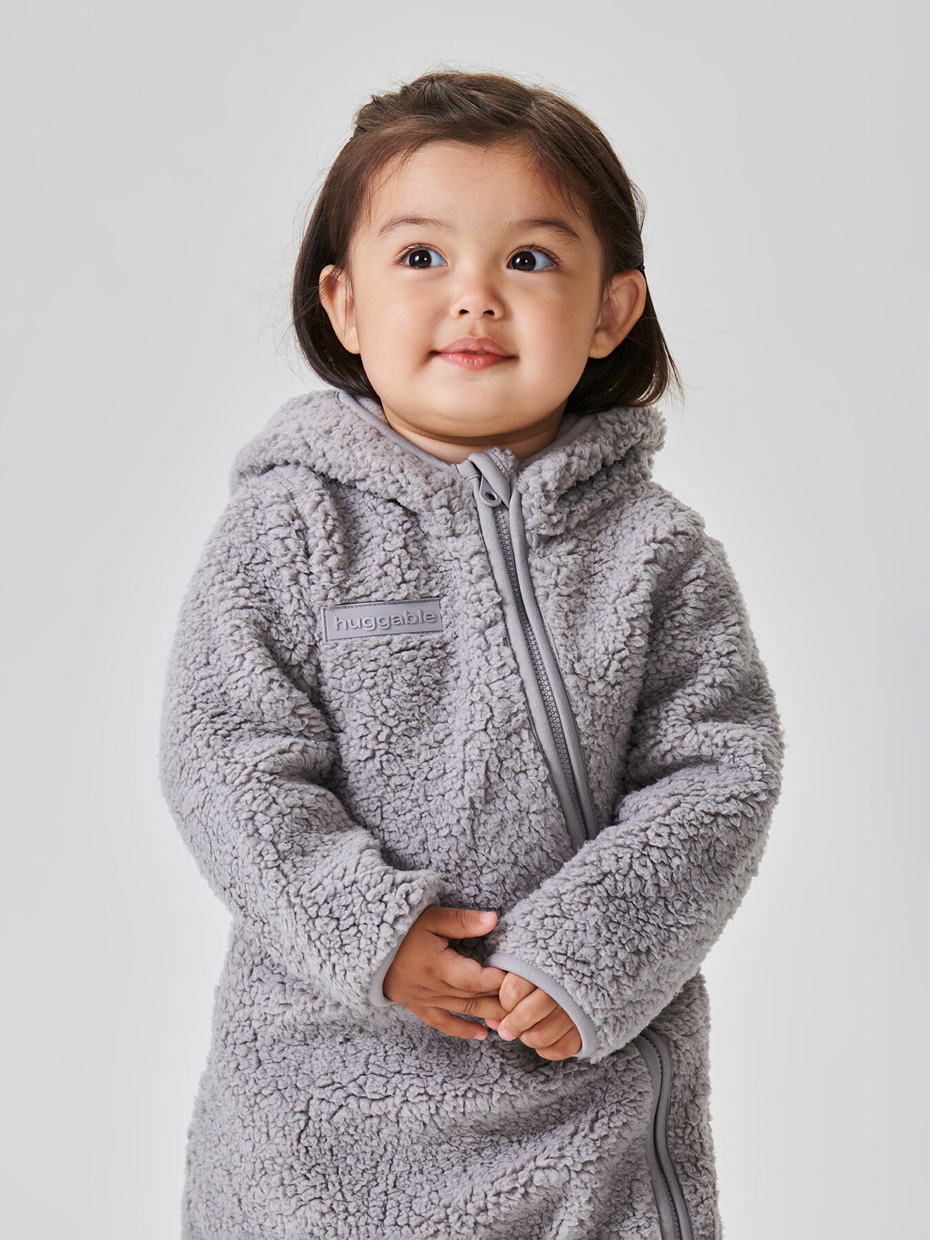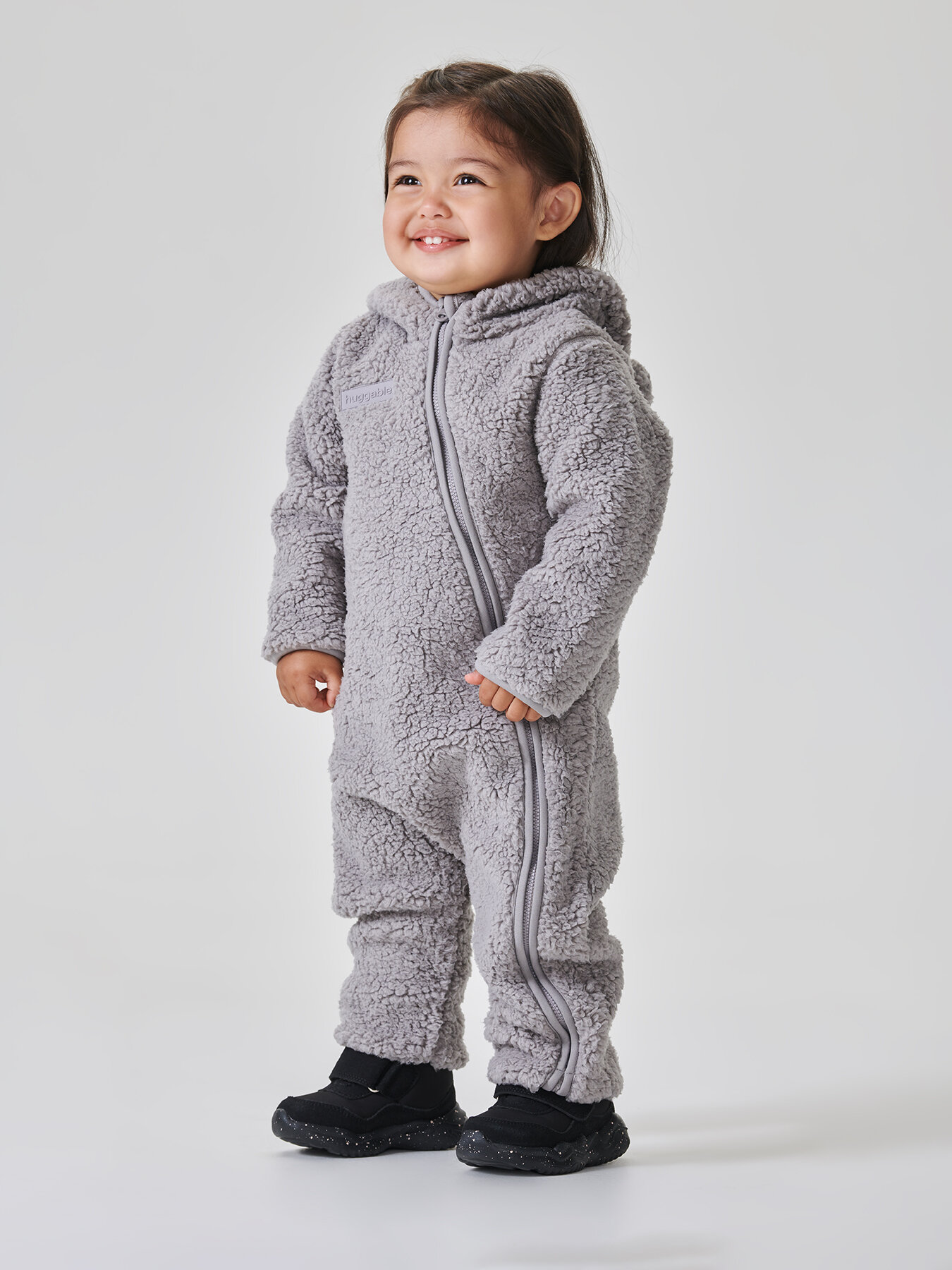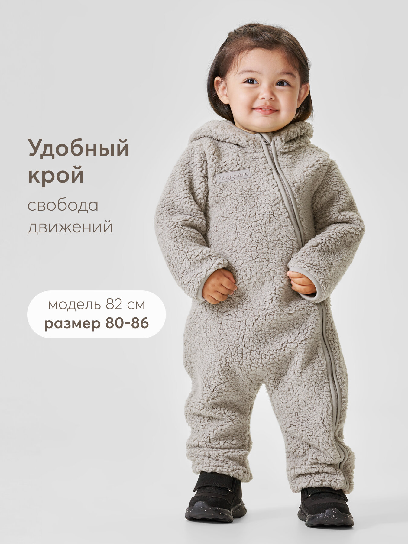 89054, Комбинезон детский флисовый Happy Baby, с капюшоном, темно-серый, 56-62