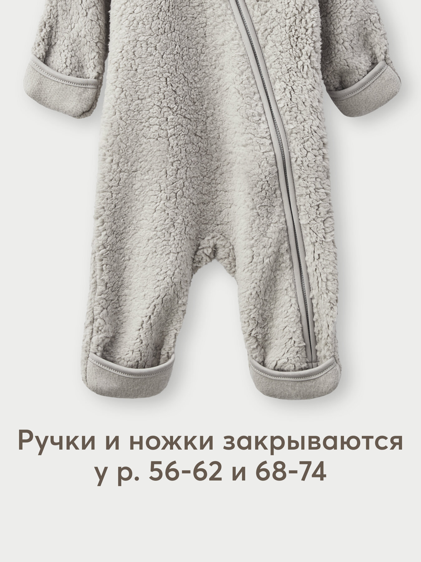 Сохранить89054, Комбинезон для новорожденных Happy Baby, флисовый, с ушками, демисезонный, серый, размер 56-62 интересное: