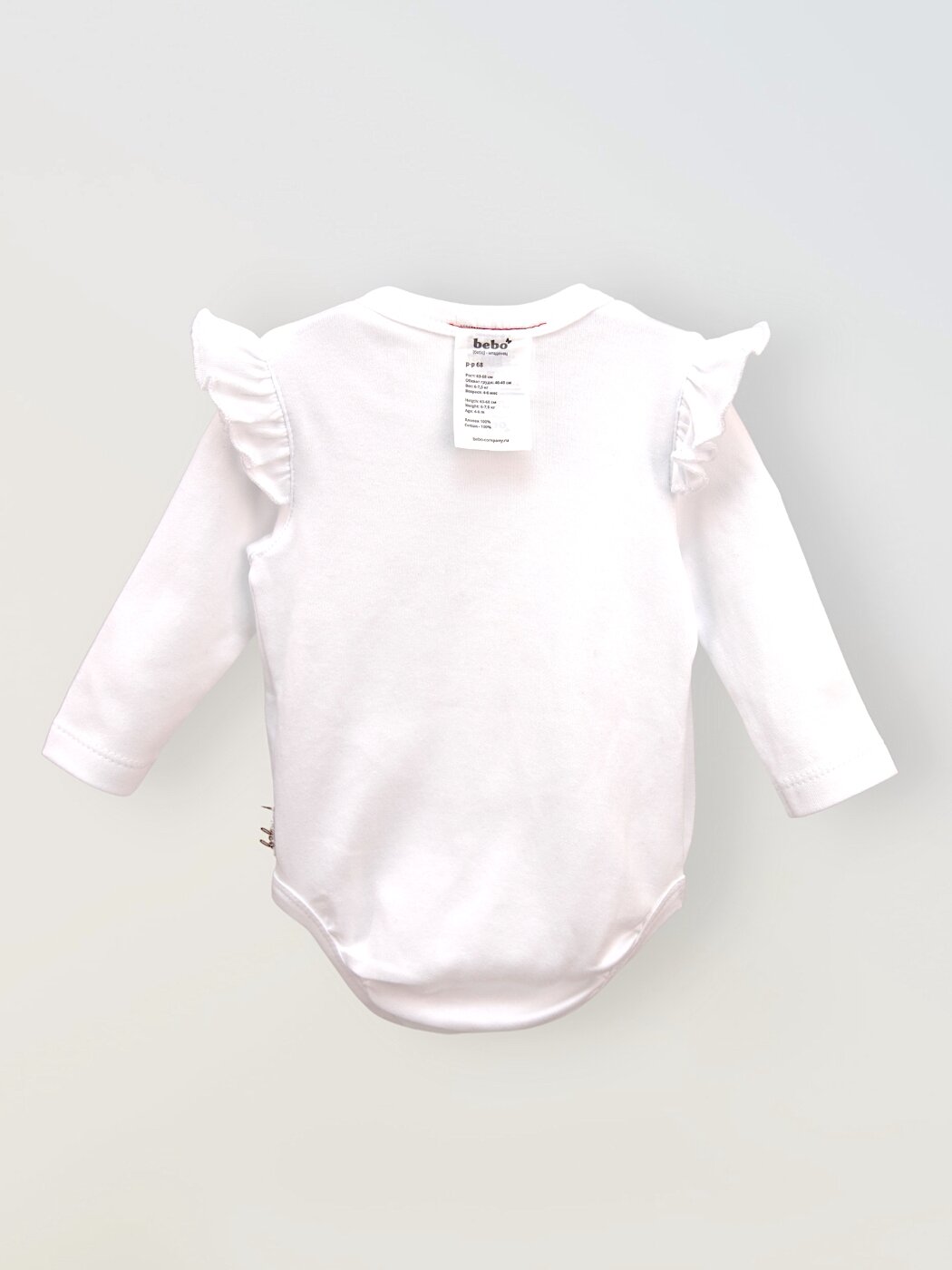 Боди кимоно Bebo, с рюшами с длинным рукавом на кнопках с антицарапками, Белый, размер 62 см