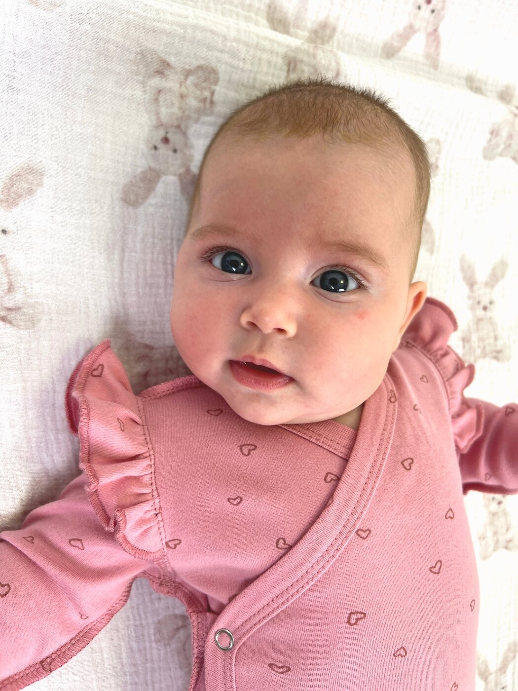 Боди кимоно Bebo, с рюшами с длинным рукавом на кнопках с антицарапками, Сердечки на розовом, размер 56 см