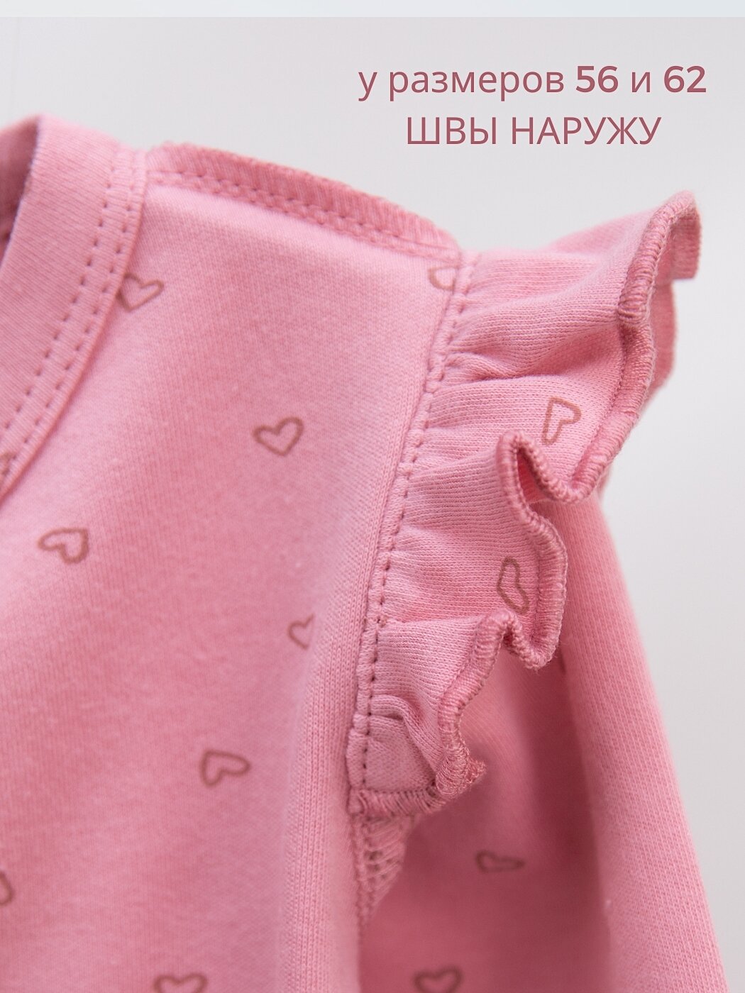 СохранитьБоди кимоно Bebo, с рюшами с длинным рукавом на кнопках с антицарапками, Сердечки на розовом, размер 56 см интересное: