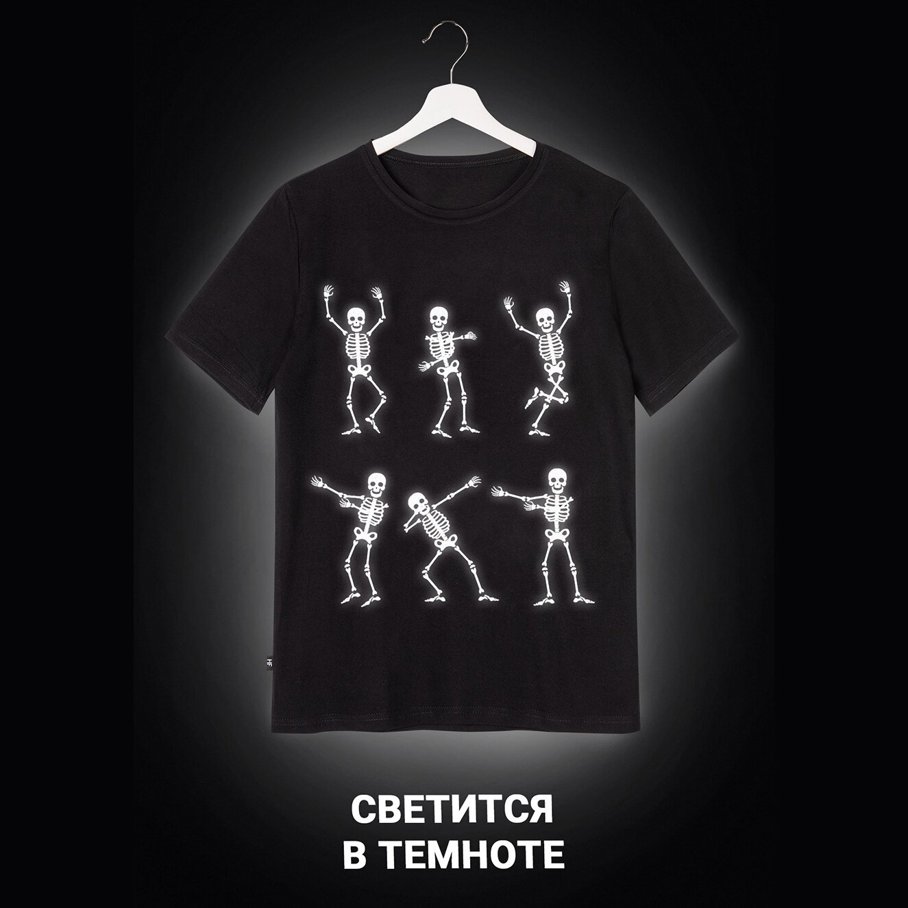 Футболка для мальчика Happy Fox светящаяся в темноте HF3237танцующие.скелеты.черный