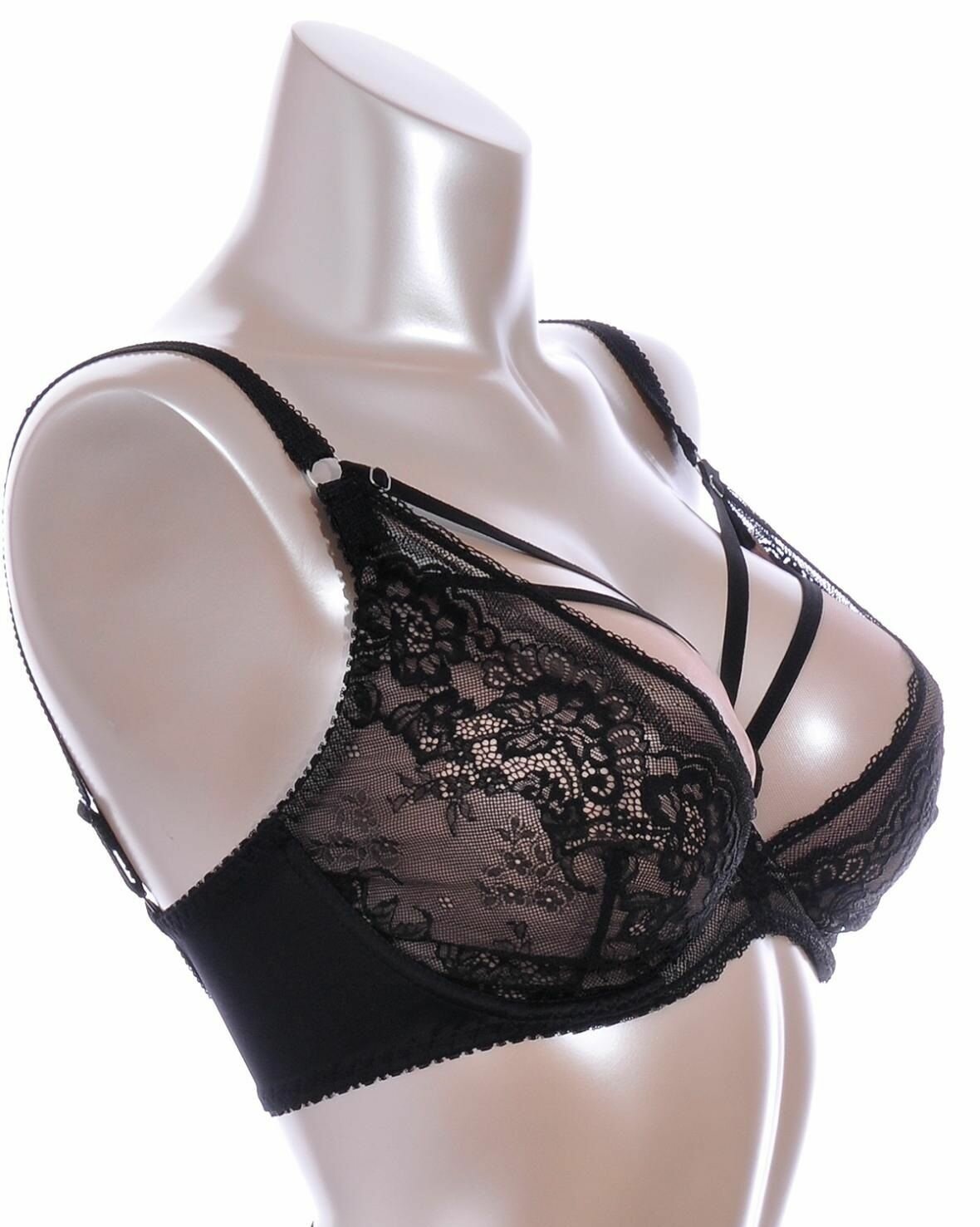 Соблазнительный бюстгальтер с мягкой чашкой +size и декоративными бретелями (Размер: 105E) (Цвет: черный)