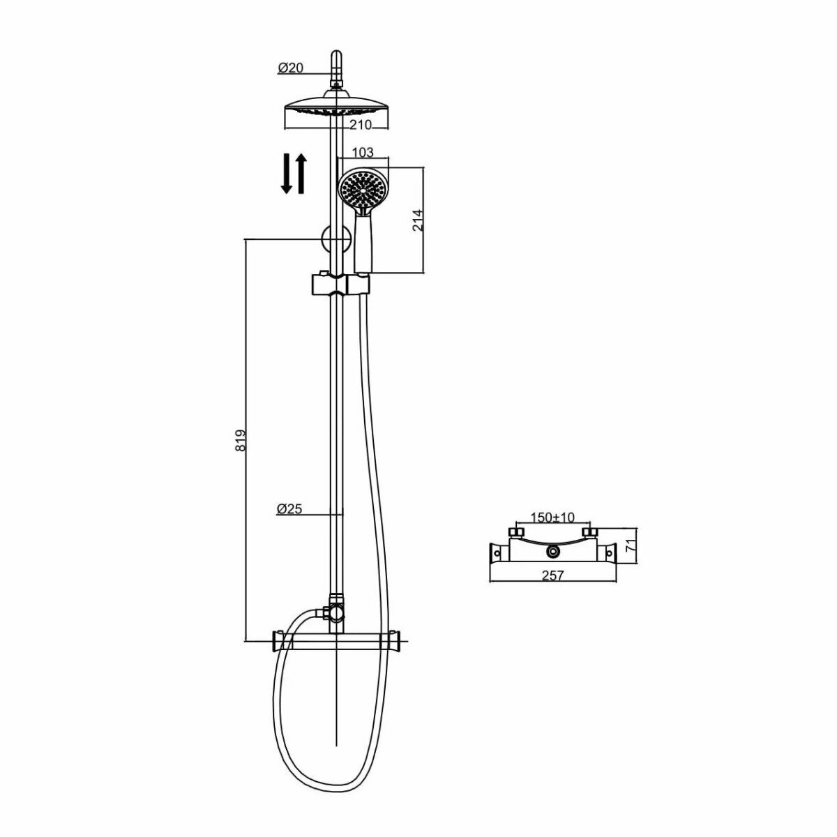 | Дополнительная информация | диаметр душевой лейки: 103 мм; диаметр верхнего душа: 210 мм |