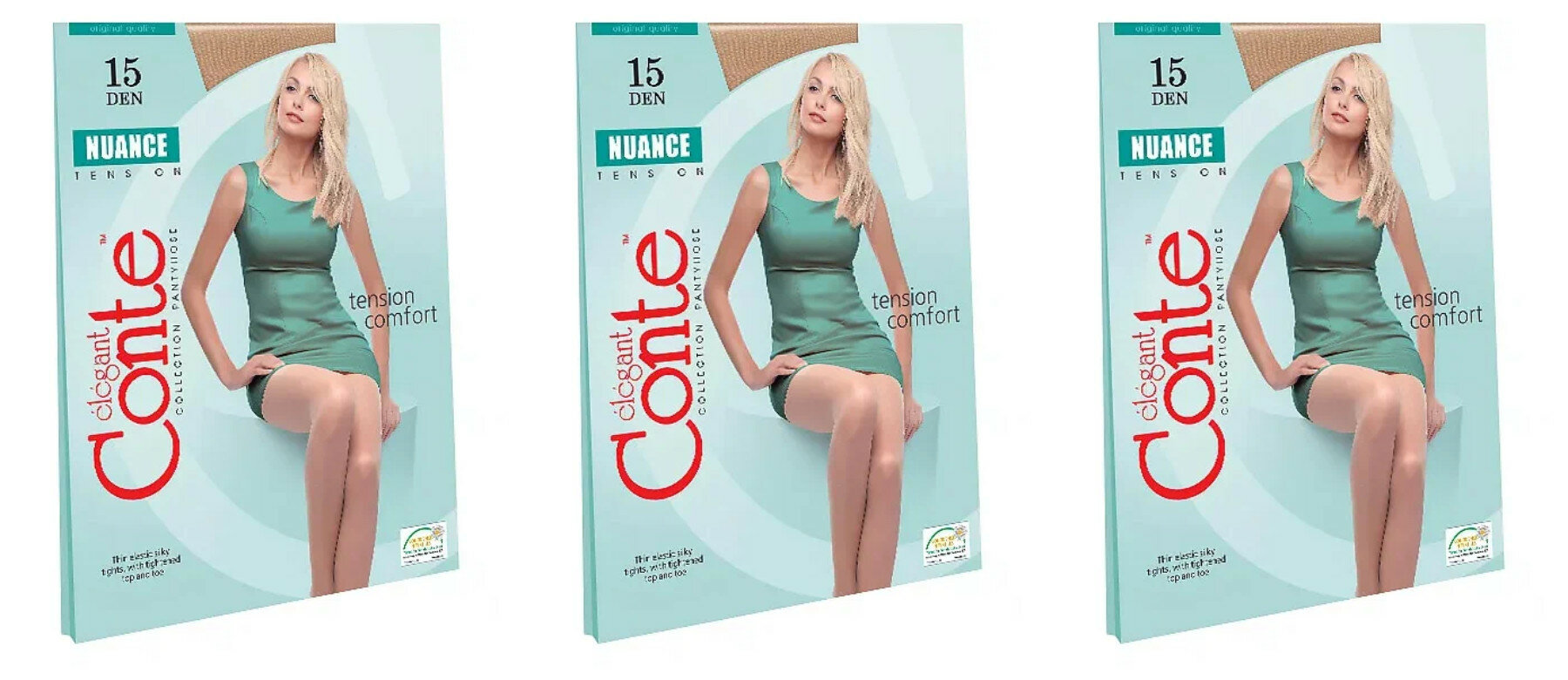 Conte Elegant Колготки женские Nuance, 15 den, размер 2, цвет beige/бежевый, 3 шт.